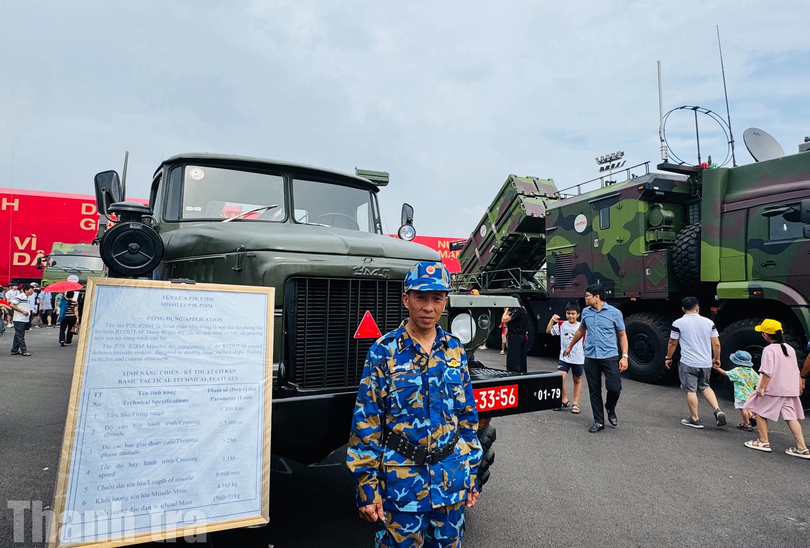 Anh Nguyễn Bá Anh, Lữ đoàn 679, Vùng 1 Hải Quân cho biết, khu vực trưng bày của Bộ Quốc phòng luôn được du khách quan tâm, đặc biệt là các cháu nhỏ khi tới đây bày tỏ vô cùng thích thú . Ảnh: Hải Lương