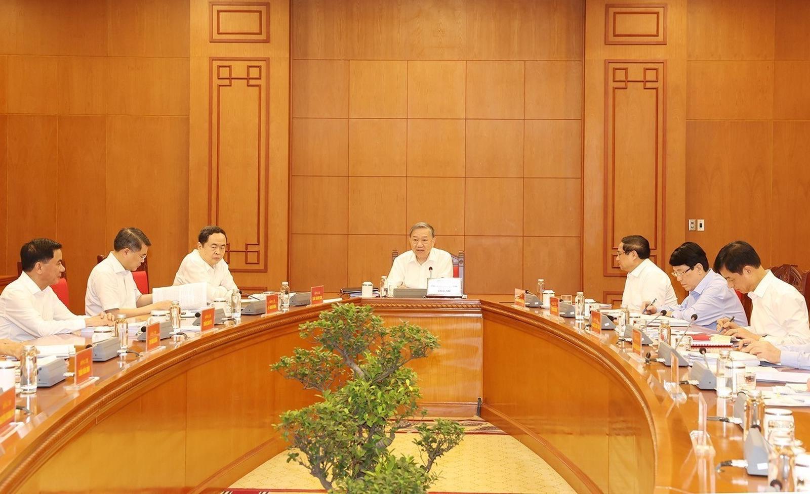 Tổng Bí thư, Chủ tịch nước Tô Lâm, Trưởng Tiểu Ban nhân sự Đại hội XIV, Trưởng Ban Chỉ đạo quy hoạch cán bộ cấp chiến lược chủ trì cuộc họp Tiểu ban và Ban Chỉ đạo. Ảnh: TTXVN