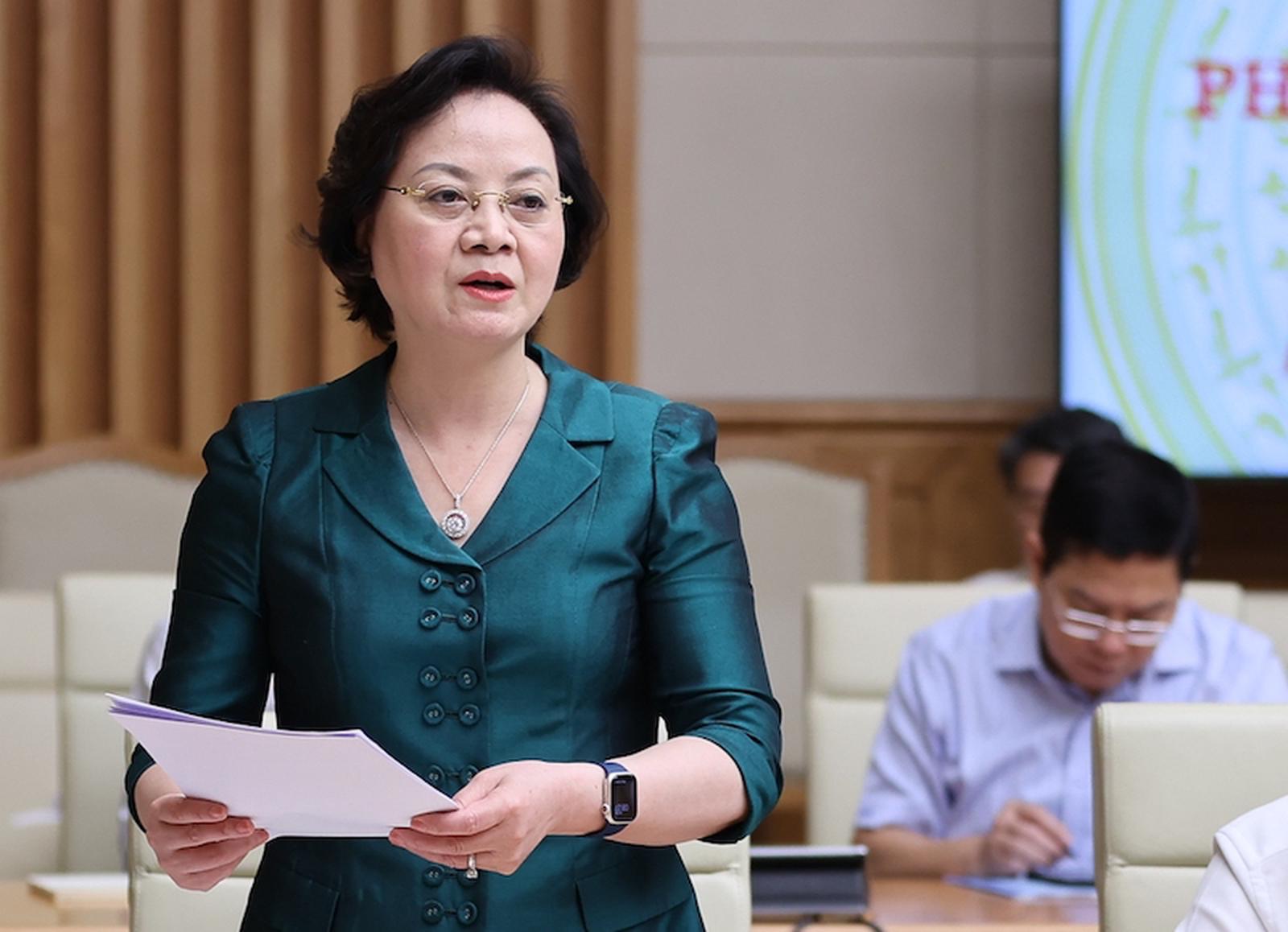 Bộ trưởng Bộ Nội vụ Phạm Thị Thanh Trà trình bày báo cáo. Ảnh: N.Bắc