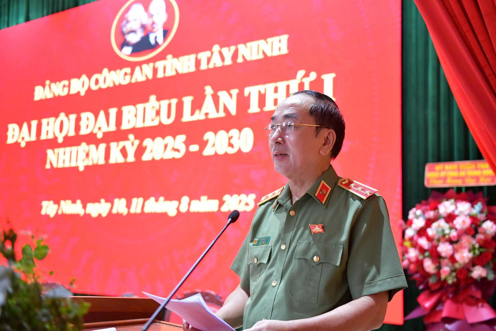 (Thanh tra) - Trong 2 ngày 10 - 11/8, Đảng bộ Công an tỉnh Tây Ninh tổ chức Đại hội đại biểu lần thứ I, nhiệm kỳ 2025-2030. Thượng tướng Trần Quốc Tỏ, Uỷ viên Ban Chấp hành Trung ương Đảng, Phó Bí thư Đảng uỷ Công an Trung ương, Thứ trưởng Bộ Công an và Phó Bí thư Tỉnh ủy, Chủ tịch UBND tỉnh Tây Ninh Nguyễn Văn Út đã tham dự Đại hội.