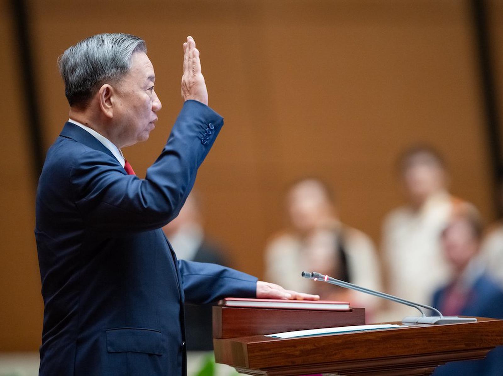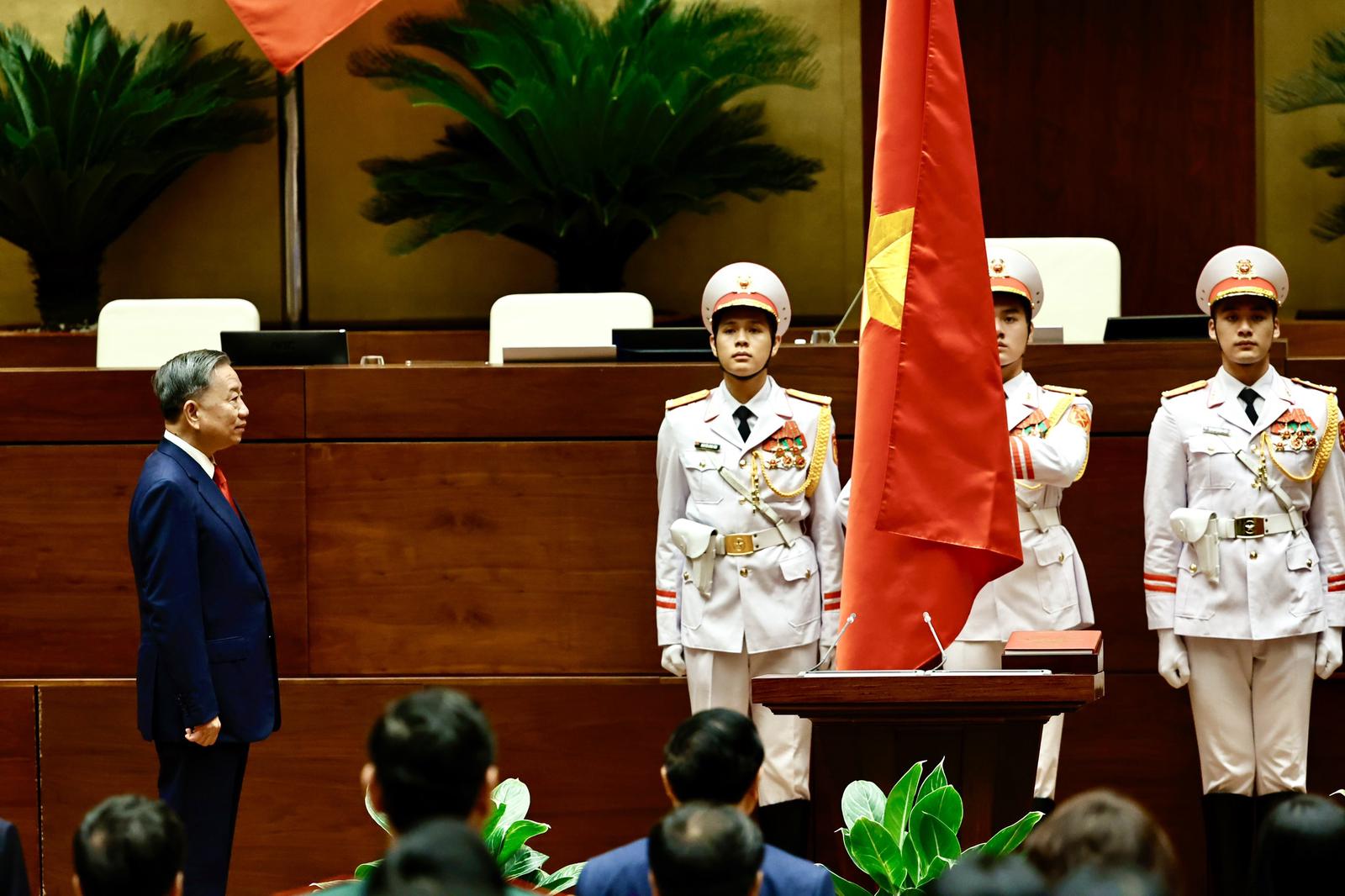 Đại tướng Tô Lâm sau khi được tín nhiệm cao bầu giữ chức Chủ tịch nước đã thực hiện nghi lễ tuyên thệ ngay sau đó.