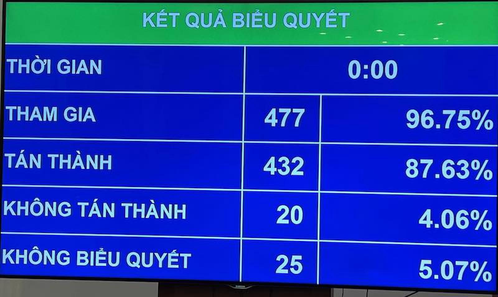 Kết quả Quốc hội biểu quyết thông qua Luật Đất đai sửa đổi. Ảnh: H.G