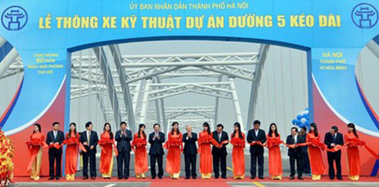 Phó Thủ tướng Hoàng Trung Hải phát lệnh thông xe kỹ thuật đường 5 kéo dài tại Hà Nội
