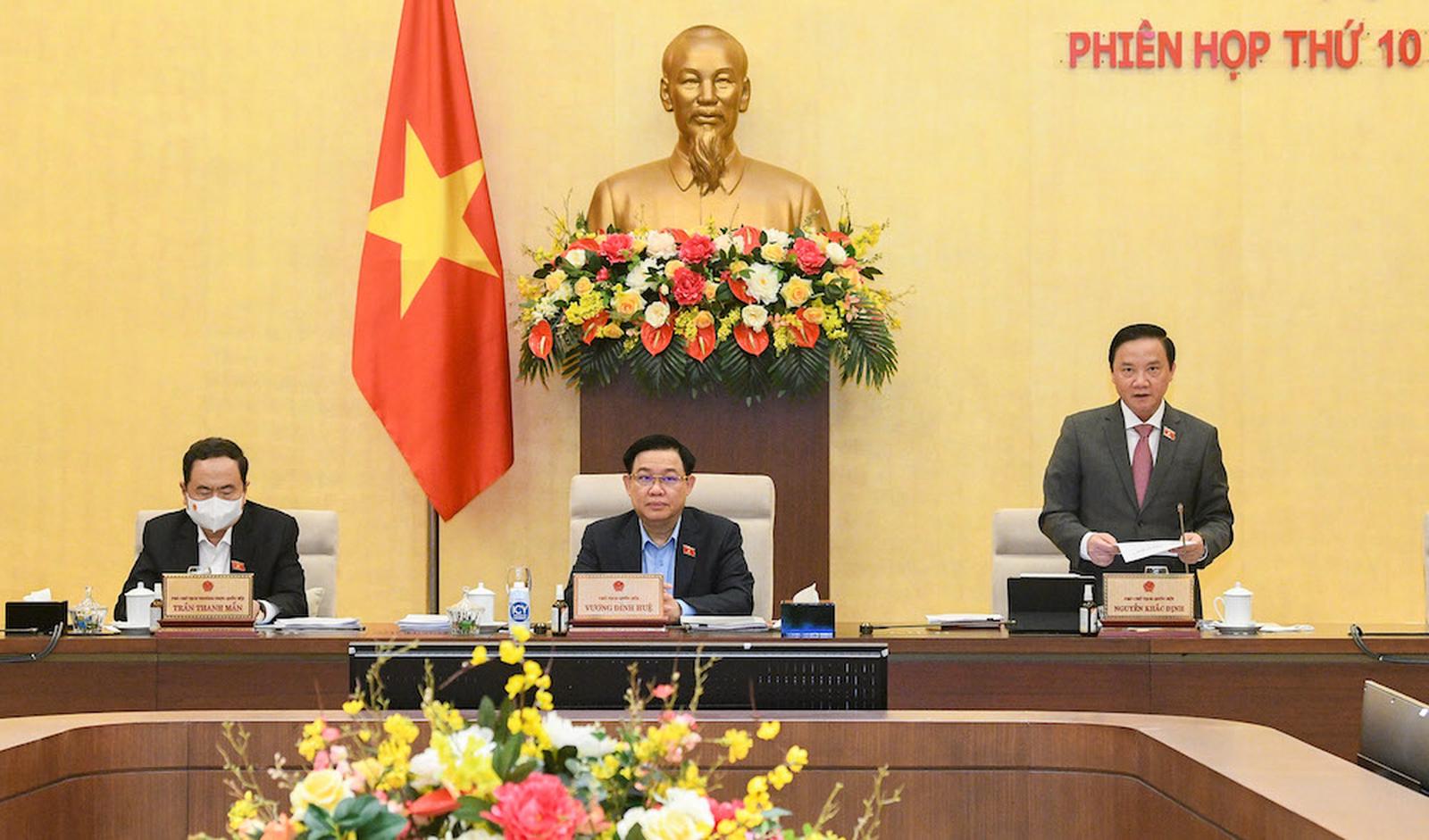 Chốt lại nội dung này, Phó chủ tịch Quốc hội Nguyễn Khắc Định nói, Chính phủ chuẩn bị kịp hồ sơ và có ý kiến của Bộ Chính trị thì sẽ bố trí để Ủy ban Thường vụ Quốc hội cho ý kiến vào phiên họp tháng 5 trước khi trình Quốc hội bổ sung vào chương trình.