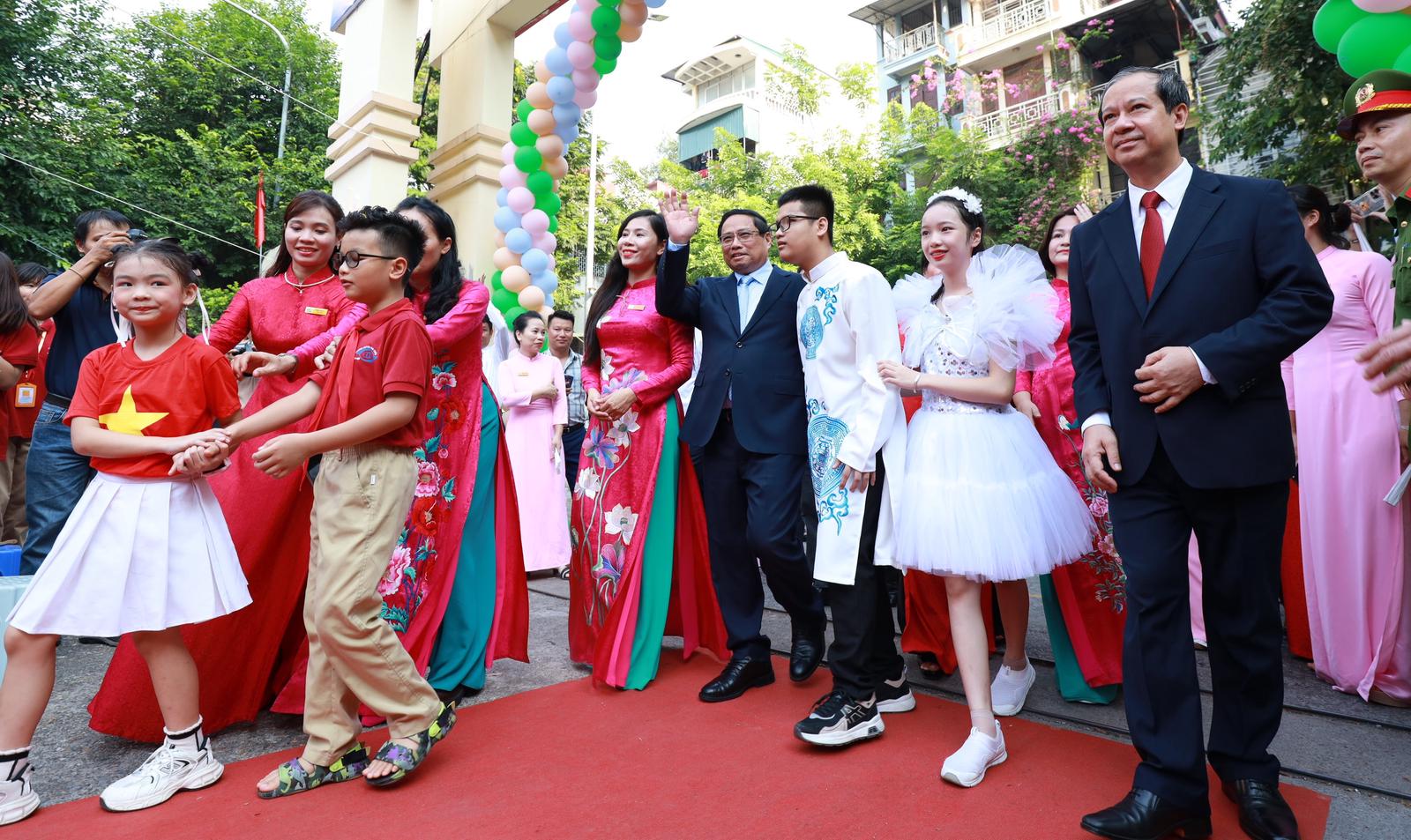 Hoà chung trong không khí khai giảng cùng các thầy cô giáo và học sinh, Thủ tướng Phạm Minh Chính đã tới dự lễ khai giảng tại Trường PTCS Nguyễn Đình Chiểu. Ảnh: HH
