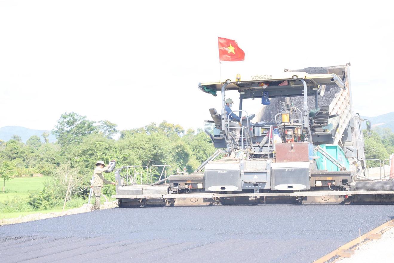 Công trường Dự án xây dựng đường bộ cao tốc Khánh Hòa - Buôn Ma Thuột đang đẩy nhanh tiến độ thi công, quyết tâm về đích đúng hẹn. Ảnh: NH