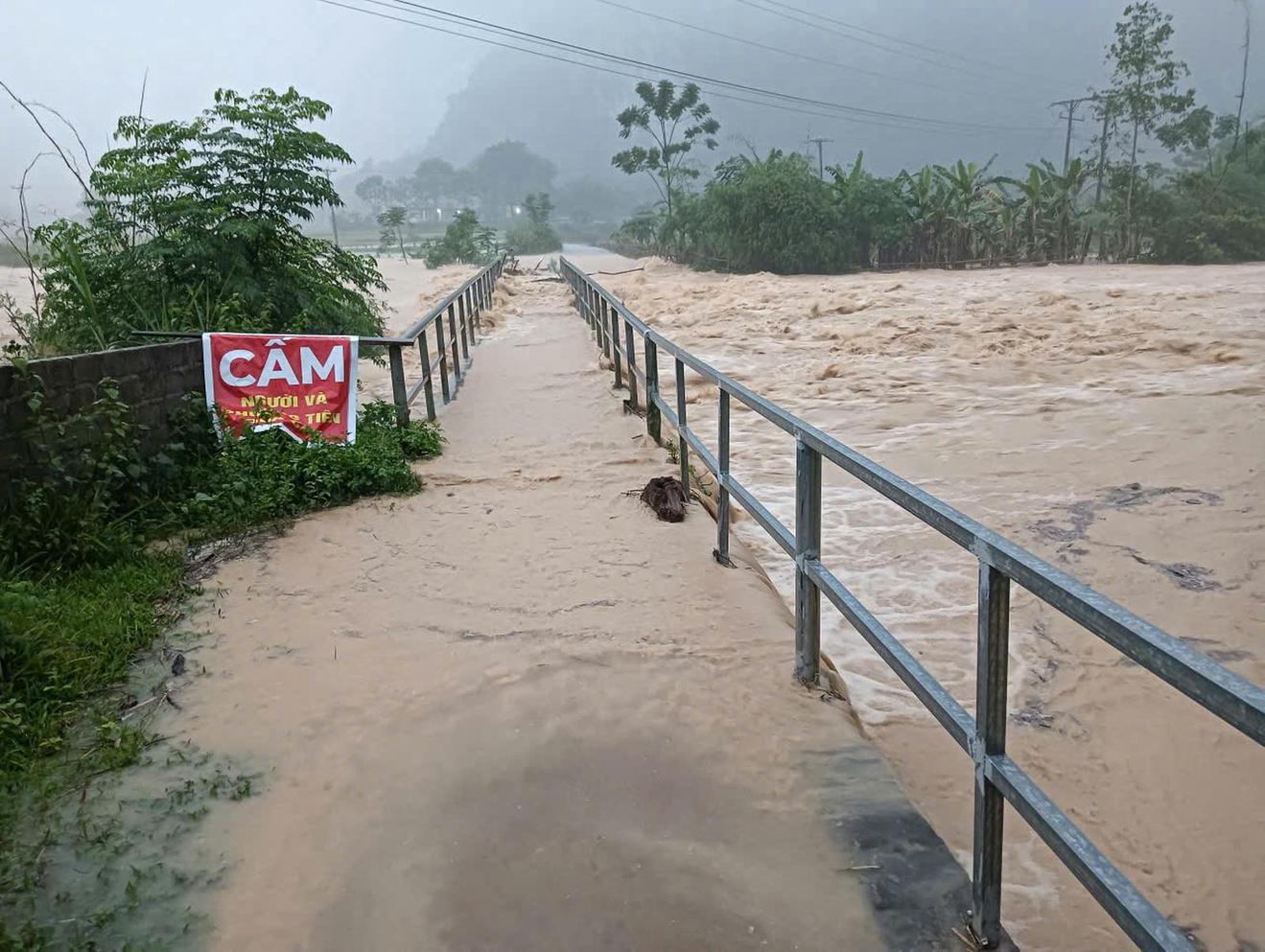 Từ đêm ngày 26 đến rạng sáng ngày 27/9, mưa to kéo dài, trên diện rộng, khiến nhiều tuyến giao thông trên địa bàn các xã trung du, miền núi tỉnh Thanh Hóa bị ngập. Ảnh: Công an Thanh Hoá