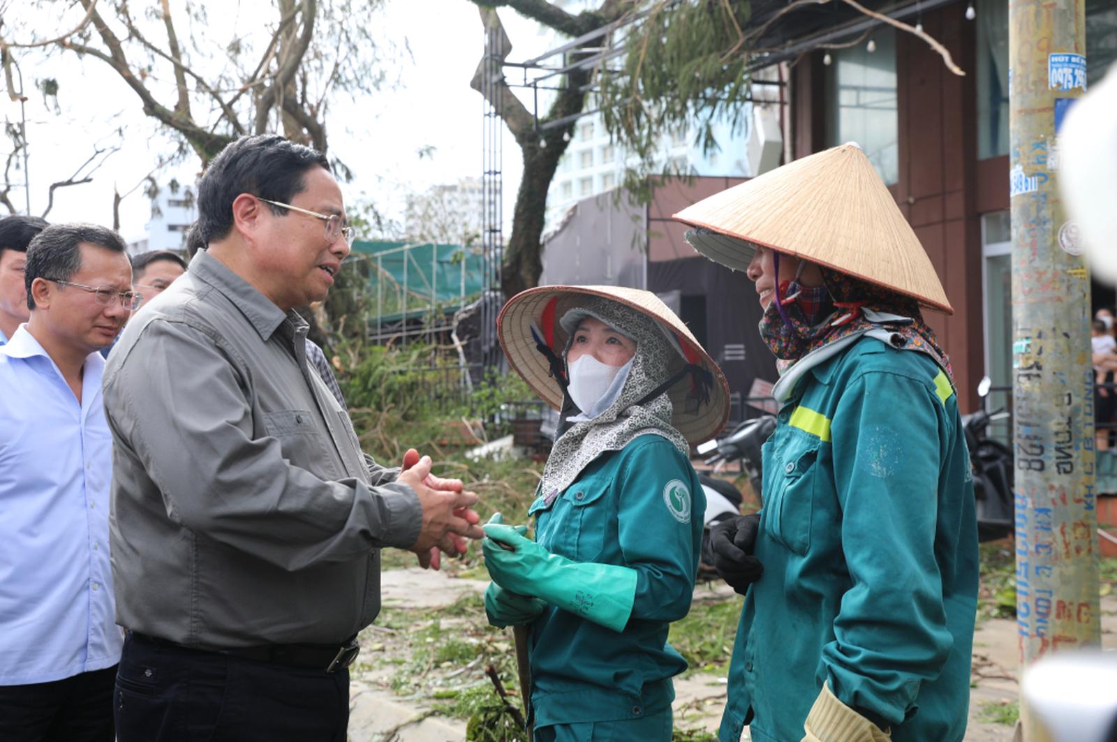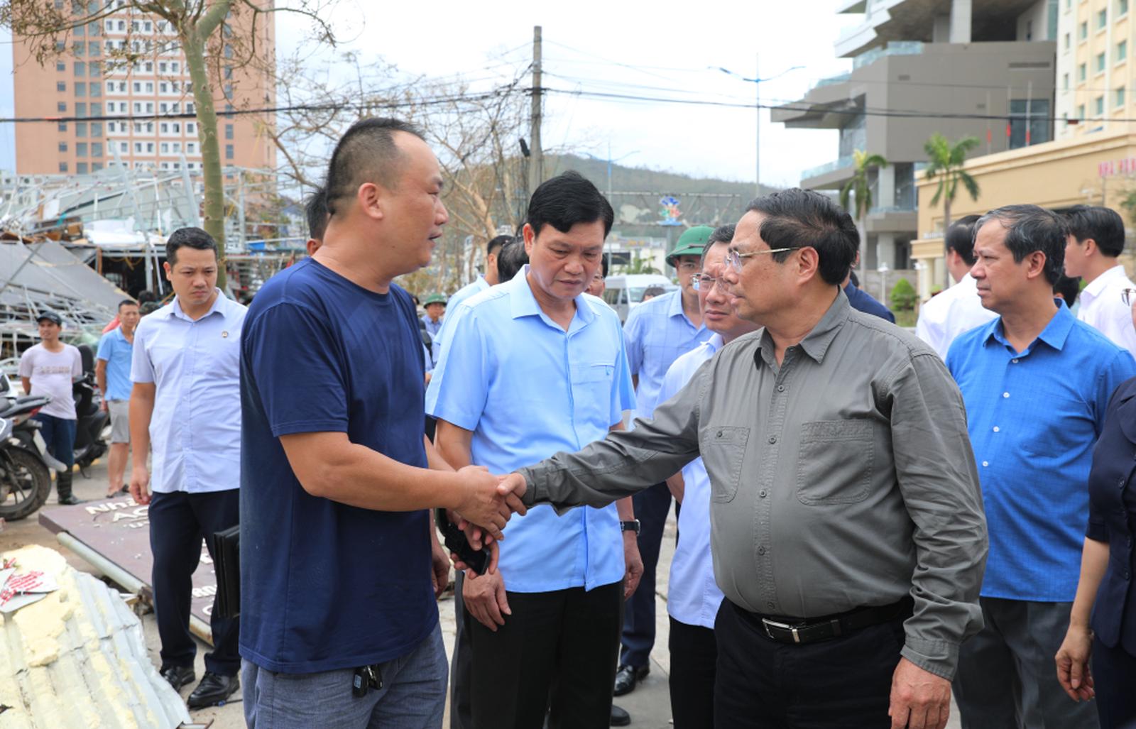 Sau khi trực tiếp đi nắm bắt tình hình, thăm hỏi người dân bị thiệt hại và động viên các lực lượng quân đội, công an, thanh niên, công nhân môi trường đô thị… đang làm nhiệm vụ dọn dẹp sau bão, Thủ tướng Phạm Minh Chính gửi lời thăm hỏi, chia sẻ của Tổng Bí thư, Chủ tịch nước Tô Lâm và các đồng chí lãnh đạo Đảng, nhà nước tới tỉnh Quảng Ninh và người dân, các gia đình có người thân thiệt mạng, bị thương, thiệt hại tài sản.