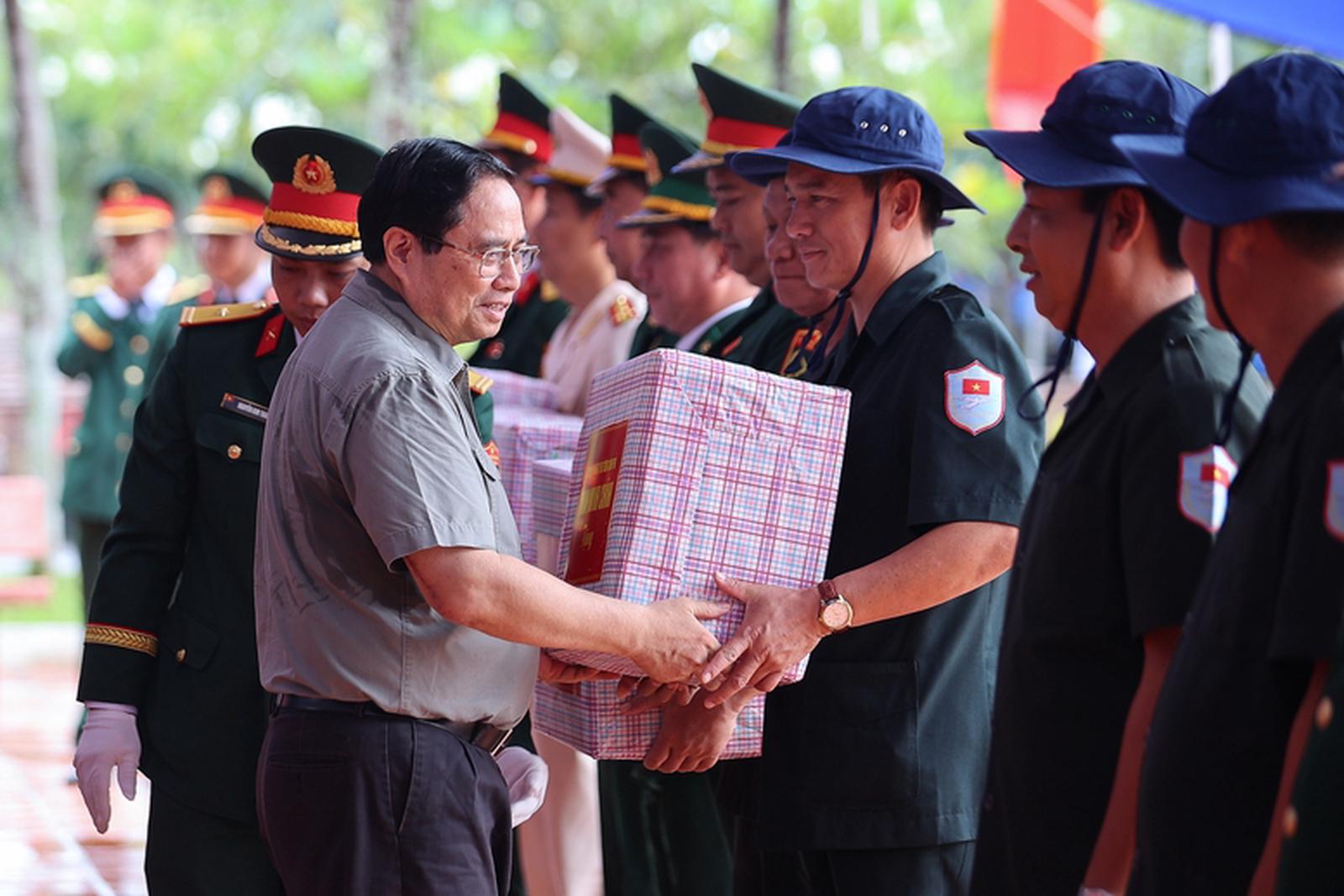 Tiếp đó, Thủ tướng Phạm Minh Chính đã gặp mặt, tặng quà, động viên các đội tìm kiếm, quy tập hài cốt liệt sĩ của Quân khu 9.