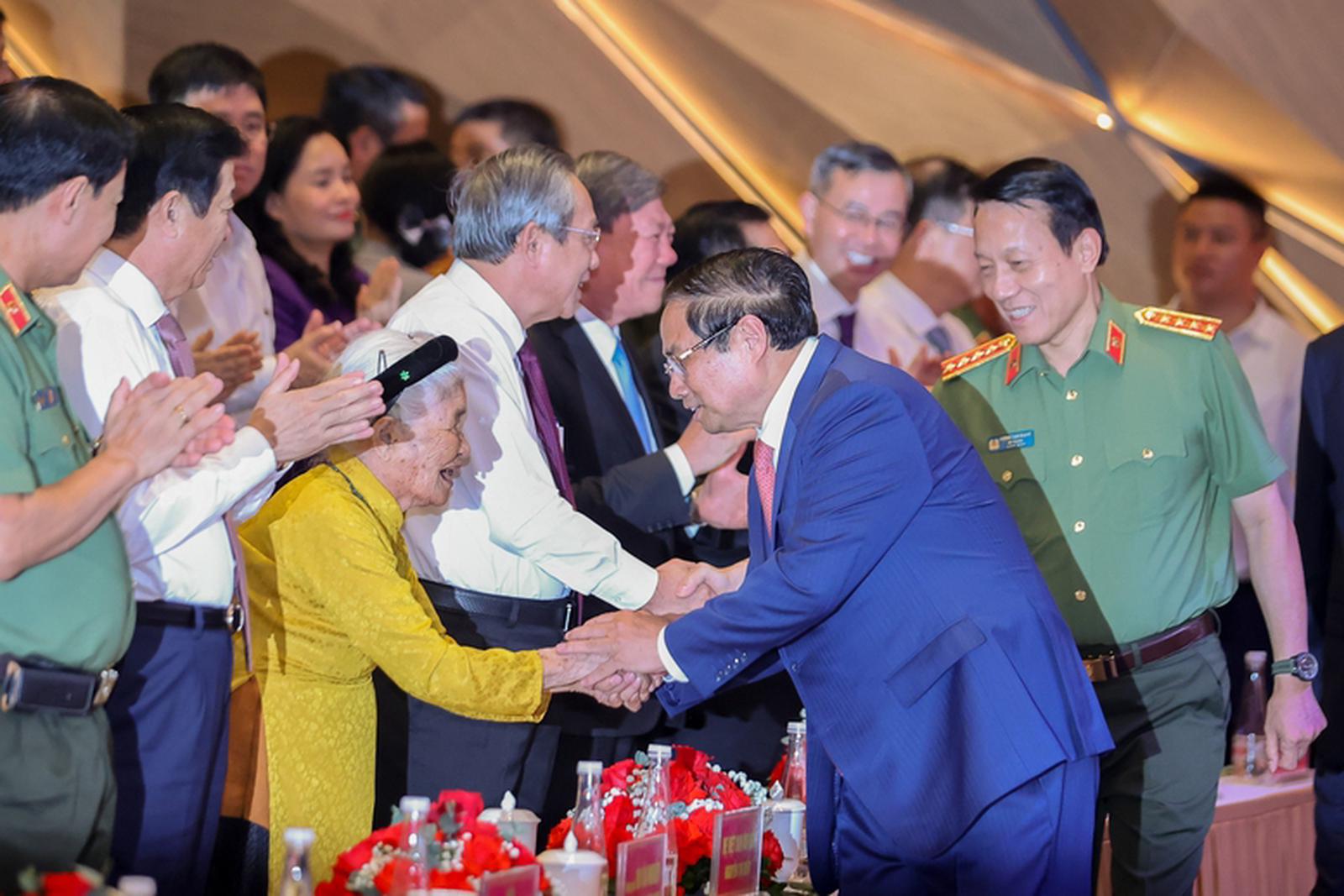 Thủ tướng Phạm Minh Chính và đại biểu Mẹ Việt Nam Anh hùng dự Đại hội Thi đua “Vì an ninh Tổ quốc” lần thứ 9. Ảnh: VGP/Nhật Bắc