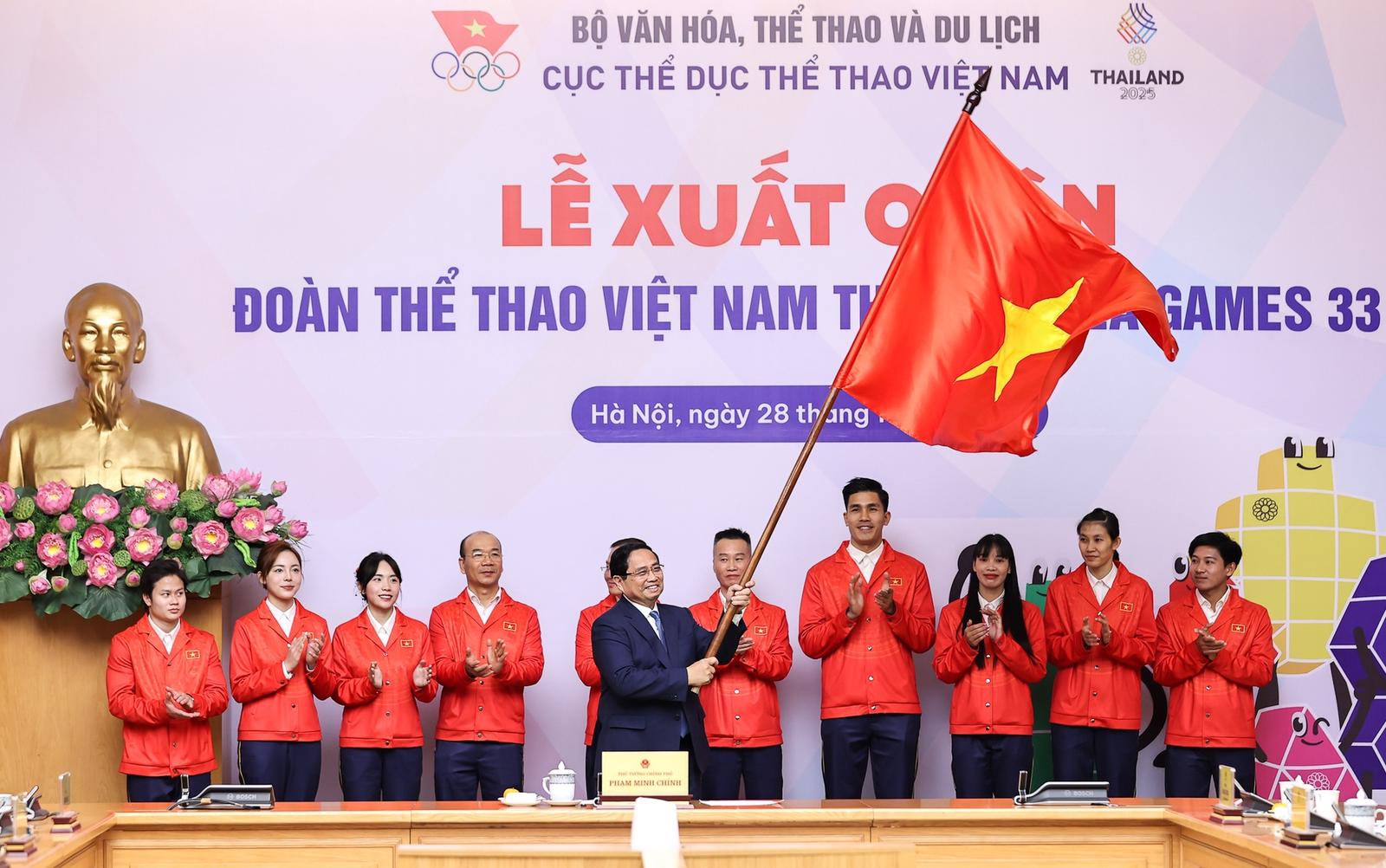 Phát biểu động viên khích lệ, giao nhiệm vụ và trao cờ cho Đoàn Thể thao Việt Nam tham dự SEA Games 33, Thủ tướng Phạm Minh Chính nhấn mạnh, SEA Games vừa là đấu trường thể thao lớn nhất khu vực; vừa là ngày hội chung thể hiện phẩm chất, ý chí và tinh thần của các dân tộc, góp phần tăng cường sự gắn kết, mối quan hệ hữu nghị truyền thống tốt đẹp trong ASEAN.