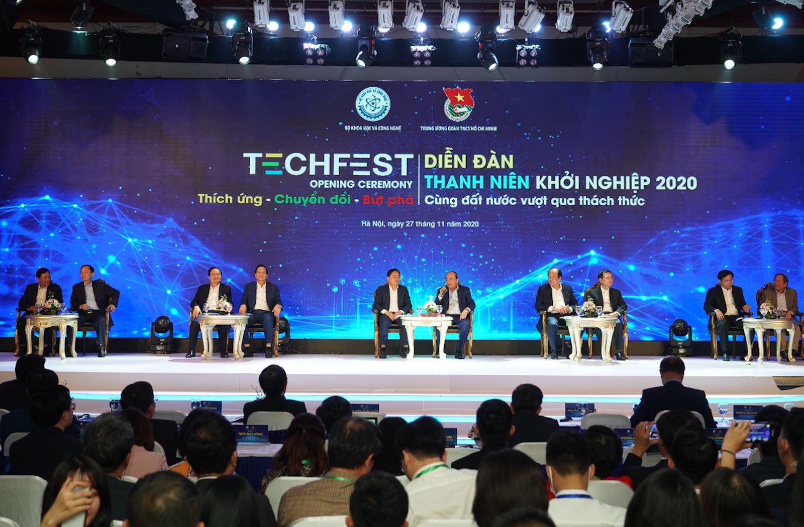 (Thanh tra) - Chiều ngày 27/11, tại Hà Nội, Thủ tướng Nguyễn Xuân Phúc đã dự lễ khai mạc Ngày hội Khởi nghiệp đổi mới sáng tạo quốc gia (TECHFEST Vietnam) và Diễn đàn Thanh niên khởi nghiệp.