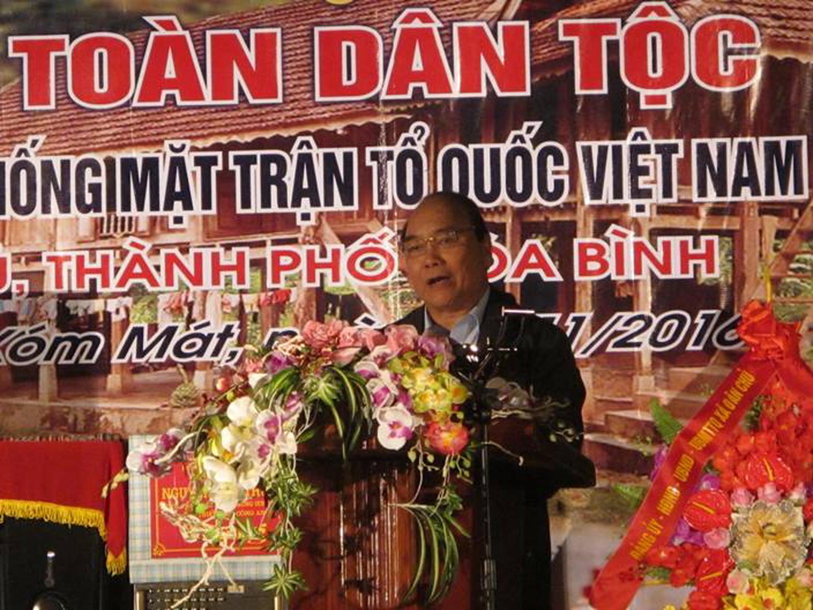 (Thanh tra) - Tối ngày 18/11/2016, Thủ tướng Nguyễn Xuân Phúc đã dự Ngày Hội Đại đoàn kết toàn dân tộc tại xóm Mát, xã Dân Chủ, TP Hòa Bình, tỉnh Hòa Bình.