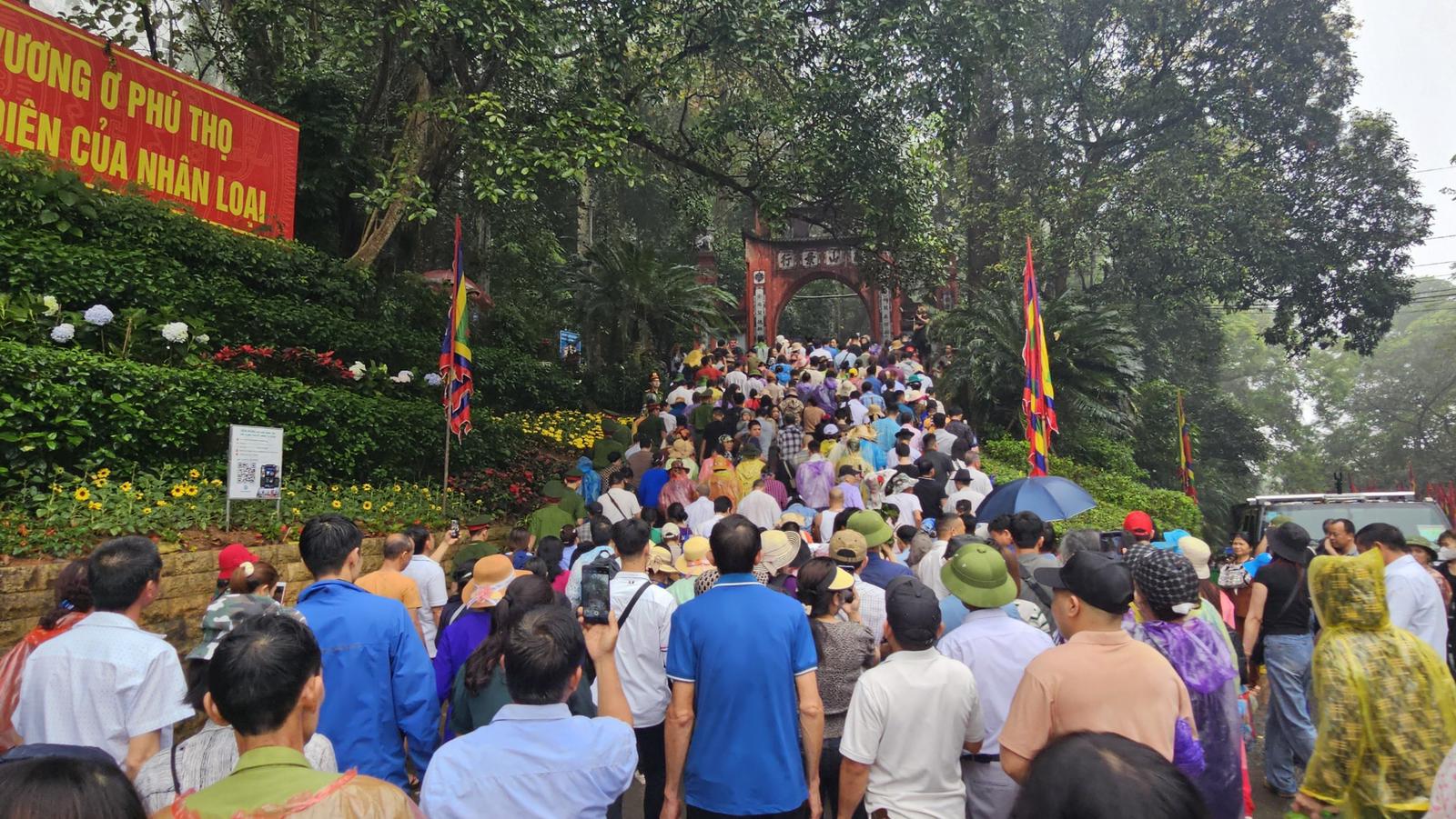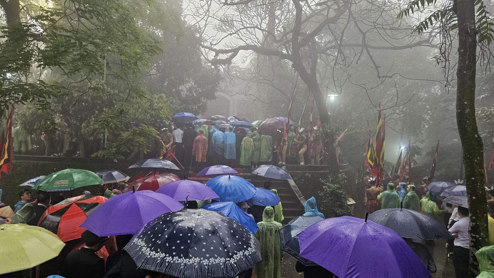 Mặc dù trời mưa to nhưng hàng vạn người dân, khu khách đã về Khu di tích lịch sử đền Hùng để dâng hương nhân ngày Giỗ Tổ