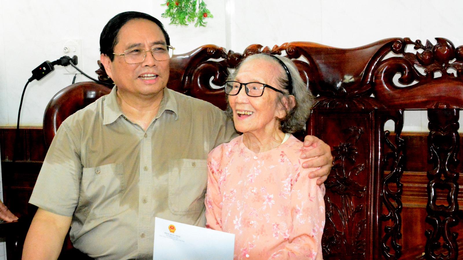 Tại thị xã Quảng Trị, Thủ tướng và Đoàn Công tác đến thăm hỏi và tặng quà các gia đình chính sách, gồm bà Nguyễn Thị Chinh, thương binh 3/4, là con ruột của Mẹ Việt Nam Anh hùng có con hi sinh trong kháng chiến chống Pháp, cứu nước; bà Nguyễn Thị Én, thương binh 3/4, là vợ của liệt sĩ, anh hùng lực lượng vũ trang nhân dân Lê Văn Kỉnh.