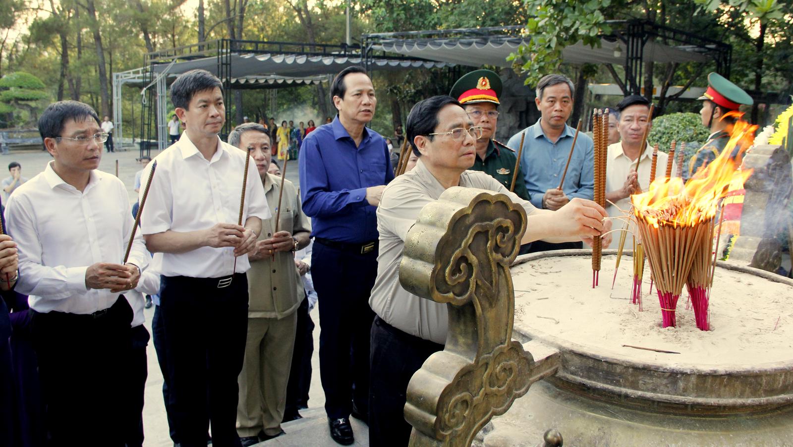 Thủ tướng Phạm Minh Chính dâng hương tưởng nhớ các anh hùng liệt sĩ. Ảnh: Minh Tân