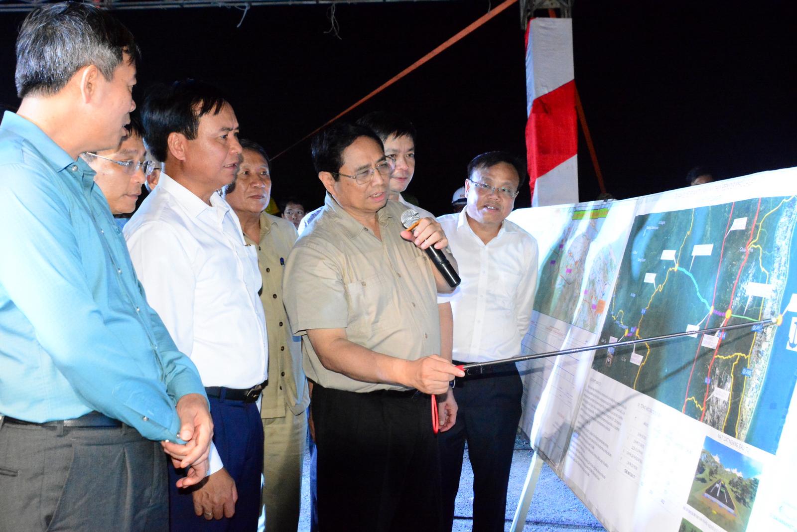 Chiều cùng ngày, Thủ tướng Chính phủ cùng Đoàn công tác đi kiểm tra thực địa, tiến độ thi công tuyến đường cao tốc Bắc - Nam, đoạn Vạn Ninh (Quảng Bình) - Cam Lộ (Quảng Trị).