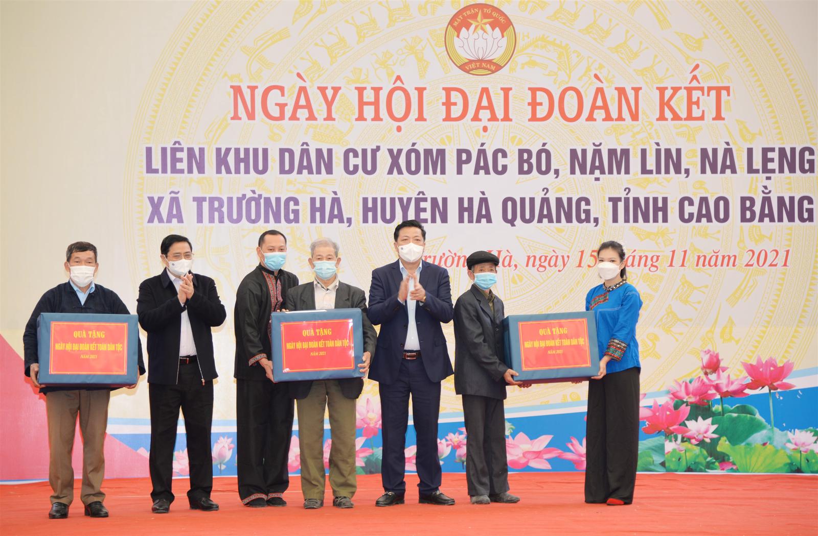 Nhân dịp này, Thủ tướng Chính phủ Phạm Minh Chính tặng quà liên khu dân cư xóm Pác Bó, Nặm Lìn, Nà Lẹng và tặng 15 suất quà cho người có uy tín, hộ nghèo, bệnh binh tại 3 xóm.