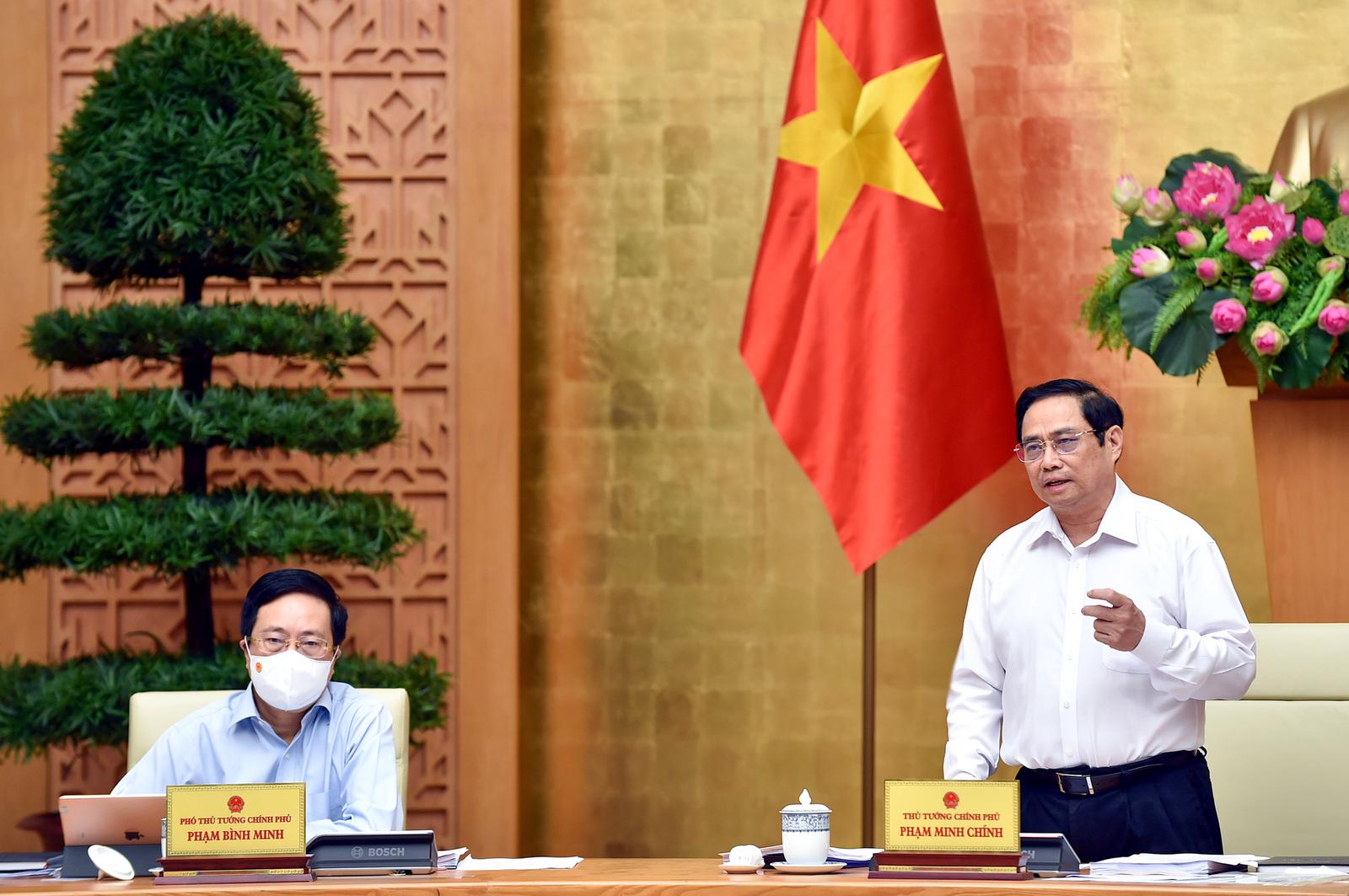 Thủ tướng nhấn mạnh, đã hy sinh phát triển kinh tế thì các địa phương thực hiện giãn cách phải kiểm soát được dịch bệnh theo tiêu chí của Bộ Y tế, đưa cả nước về trạng thái “bình thường mới”. Thủ tướng nêu quyết tâm phấn đấu kiểm soát dịch bệnh trong tháng 9. Trong lúc còn khan hiếm vacicne, chưa bao phủ được vaccine thì các biện pháp phòng ngừa vẫn là cơ bản, chiến lược, lâu dài, quyết định, trong đó có biện pháp giãn cách xã hội, phải tăng cường tuyên truyền, vận động, kêu gọi để nhân dân chia sẻ, thông cảm, hưởng ứng, tích cực tham gia. Còn chống dịch là quan trọng, cần thiết, đột phá, phải tích cực, mạnh mẽ, quyết liệt.