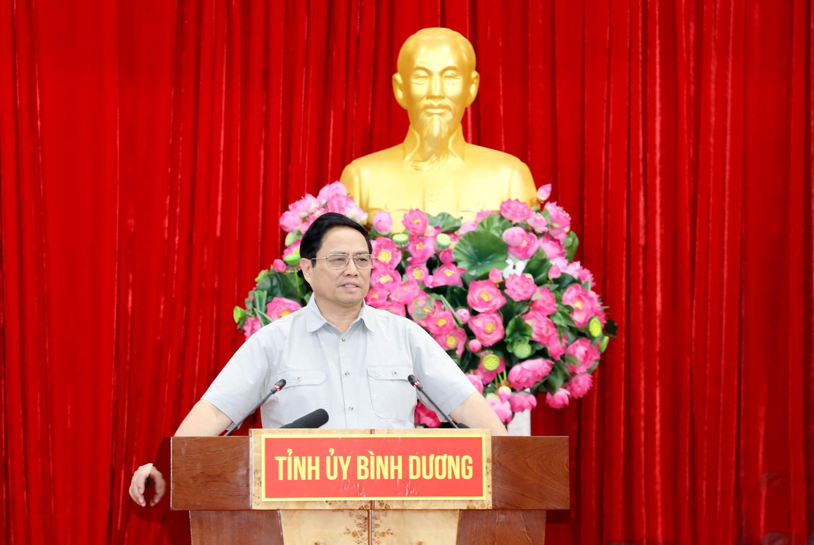 Thủ tướng nhấn mạnh yêu cầu Bình Dương phát triển nhanh, hài hòa, bao trùm, bền vững, không để ai ở lại phía sau. Cụ thể hơn, Bình Dương phải phát triển nhanh bởi có điều kiện thuận lợi, có nền tảng phát triển từ nhiều năm nay, có vị trí trong vùng Đông Nam Bộ phát triển năng động và có nhiều đổi mới sáng tạo; phát triển hài hòa giữa văn hóa, kinh tế, chính trị, xã hội; phát triển tất cả các địa phương, huyện thị, đáp ứng yêu cầu trong bối cảnh mới.