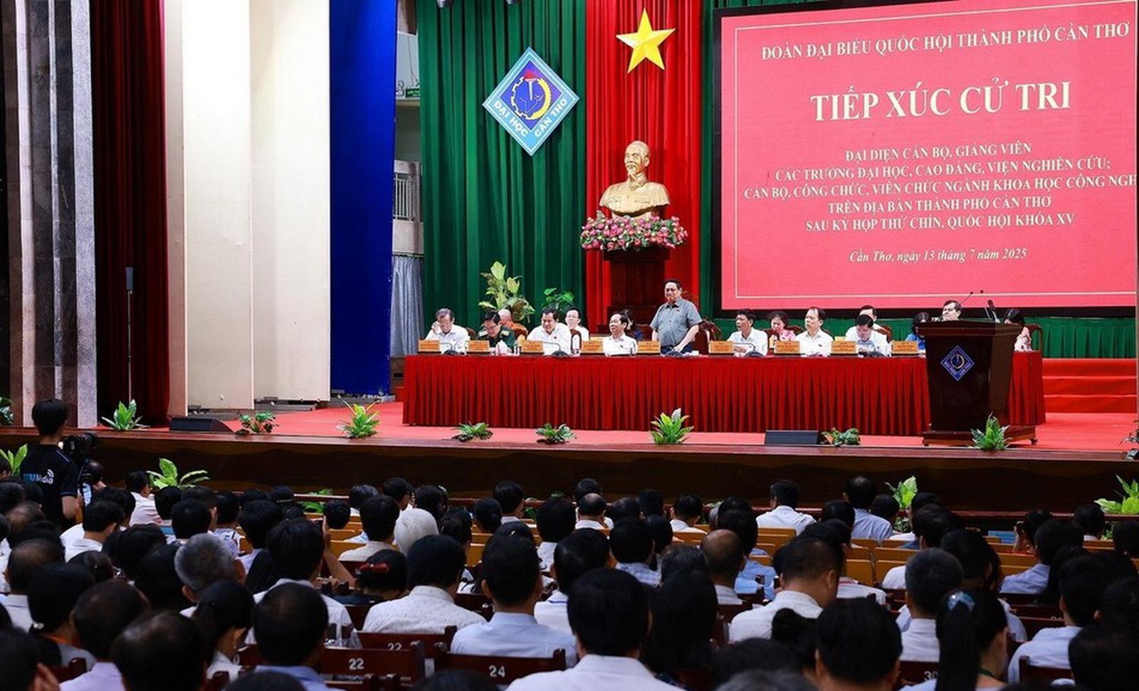 (Thanh tra) - Chiều 13/7, tại TP Cần Thơ, Ủy viên Bộ Chính trị, Thủ tướng Chính phủ Phạm Minh Chính đã có buổi tiếp xúc cử tri là cán bộ, giảng viên các trường đại học, cao đẳng, viện nghiên cứu; cán bộ, công chức, viên chức ngành khoa học công nghệ trên địa bàn TP Cần Thơ.