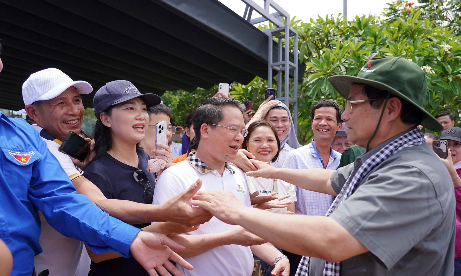 Thủ tướng Phạm Minh Chính thăm hỏi cán bộ, Nhân dân tại Thành cổ Quảng Trị. Ảnh: Minh Tân