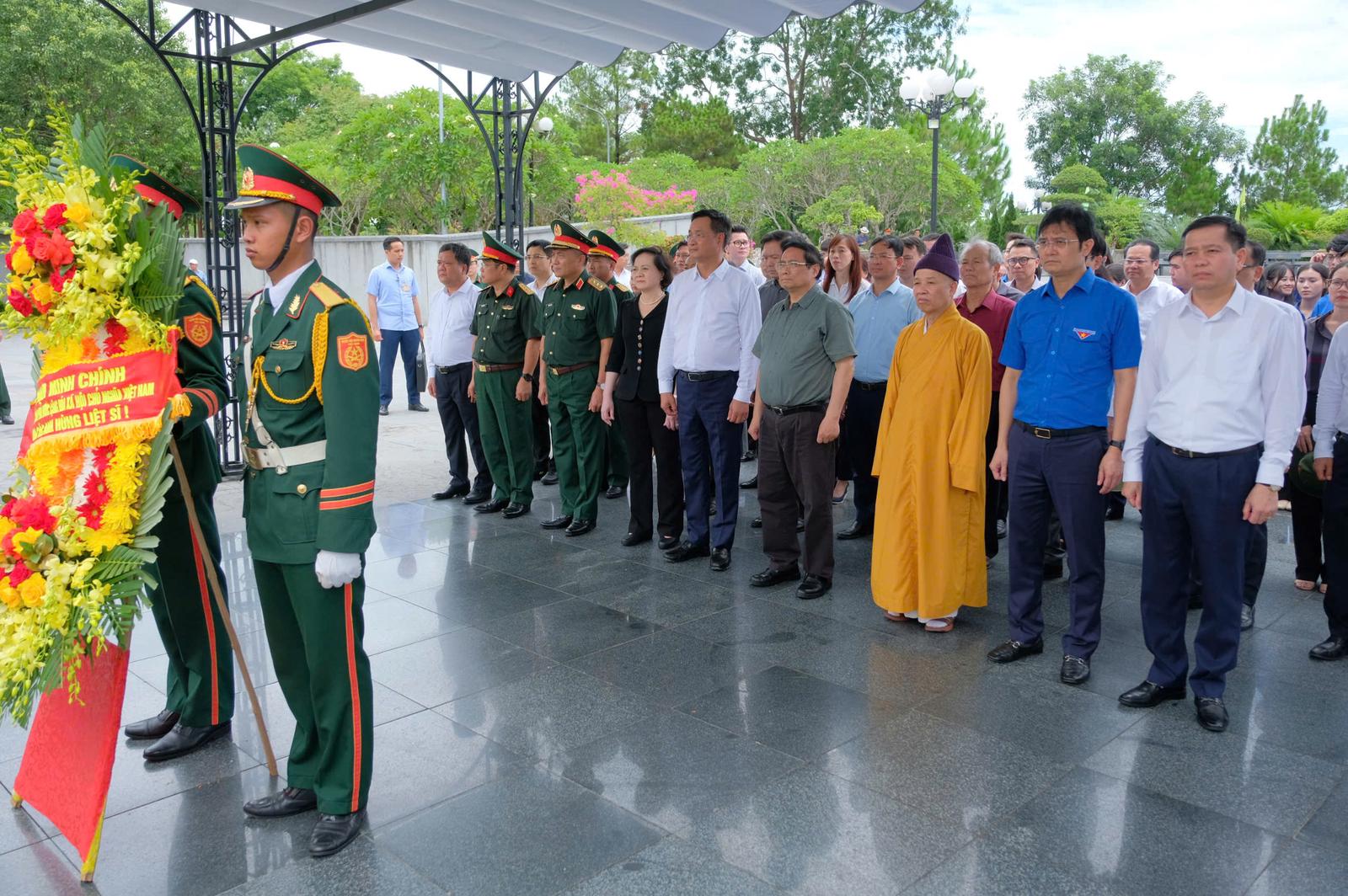 Tiếp đó, Thủ tướng và Đoàn đã tới dâng hương, dâng hoa tại Thành Cổ Quảng Trị và Nghĩa trang Liệt sĩ Quốc gia Đường 9.