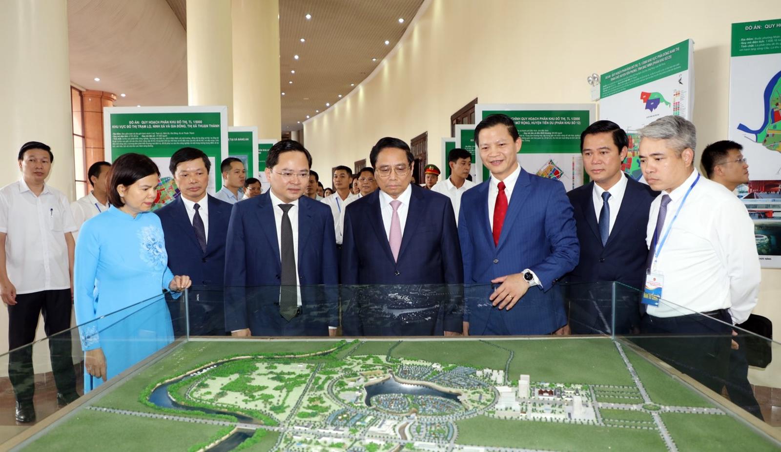 Thủ tướng Chính phủ Phạm Minh Chính thăm quan trưng bày quy hoạch tỉnh Bắc Ninh. Ảnh: HH