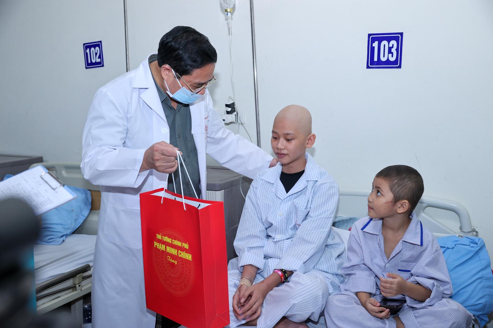 Thủ tướng Phạm Minh Chính đã thăm, tặng quà các bệnh nhi. Ảnh: PV