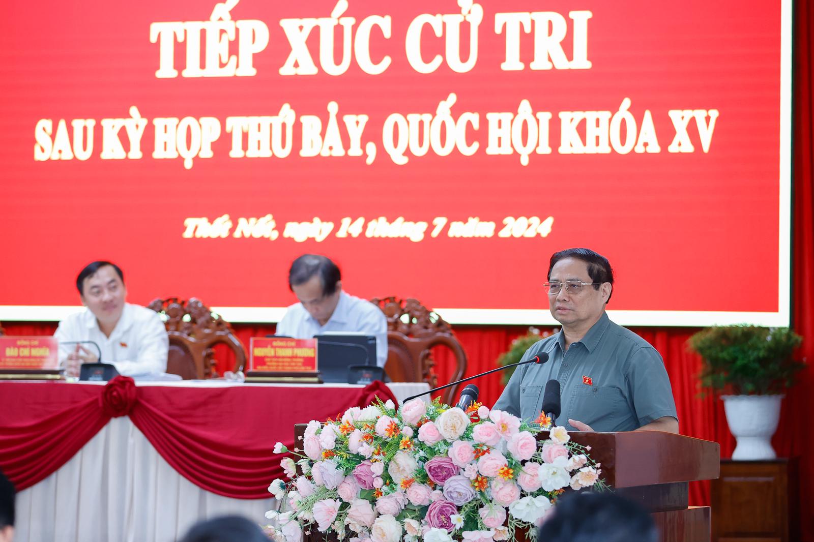 Phát biểu với cử tri, Thủ tướng Phạm Minh Chính đã dành thời gian phân tích, nhấn mạnh và làm rõ hơn về kết quả Kỳ họp thứ bảy Quốc hội khóa XV; công tác chỉ đạo, điều hành, tình hình kinh tế - xã hội cả nước và Cần Thơ trong 6 tháng đầu năm; định hướng, nhiệm vụ, giải pháp trọng tâm thời gian tới; giải đáp các kiến nghị cụ thể của cử tri.