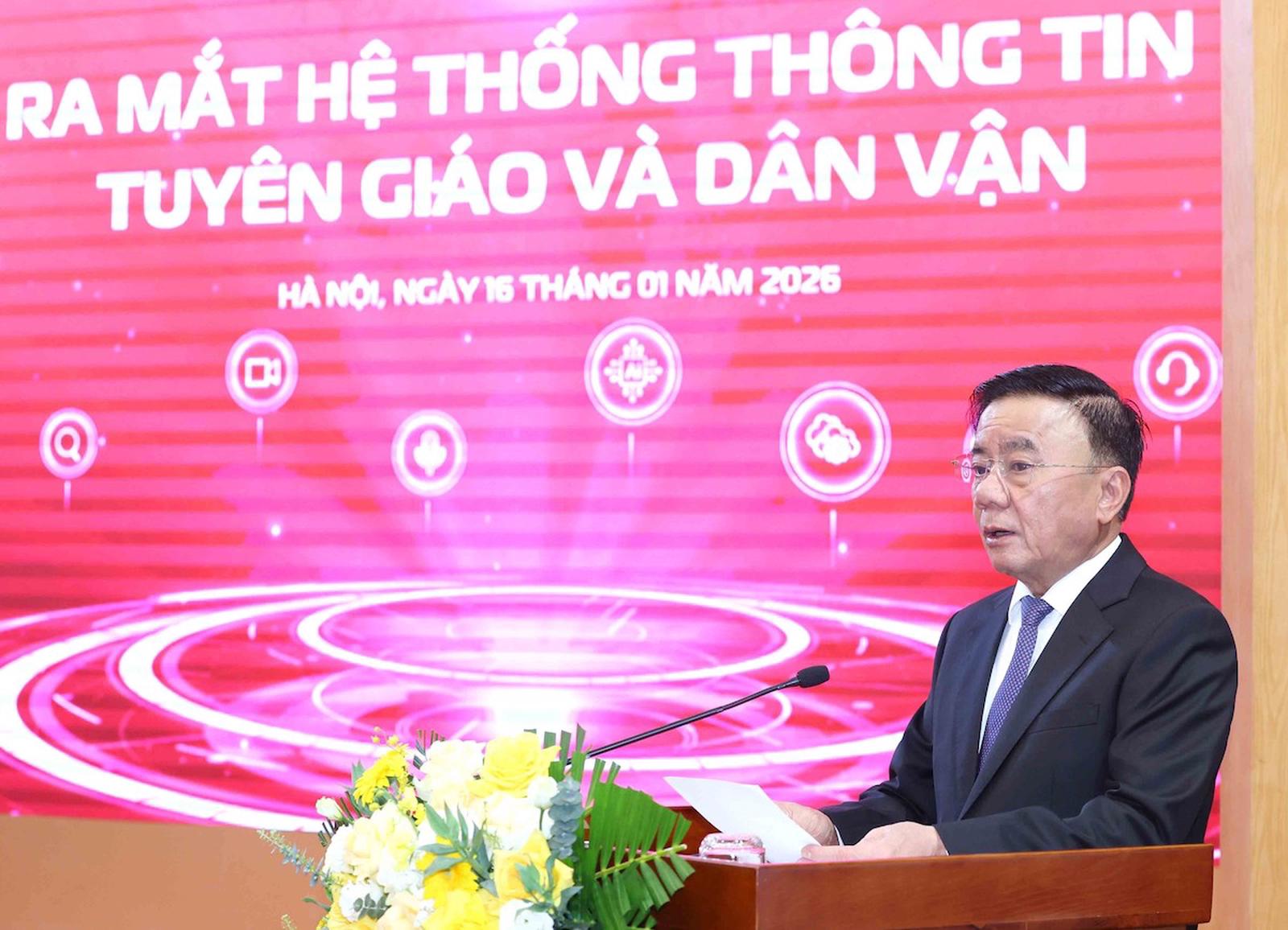 Sáng 16/1, Ban Tuyên giáo và Dân vận Trung ương tổ chức lễ ra mắt ứng dụng Tuyên giáo và Dân vận. Thường trực Ban Bí thư Trần Cẩm Tú, Trưởng Ban Tuyên giáo và Dân vận Trung ương Trịnh Văn Quyết cùng lãnh đạo ban, bộ, ngành thực hiện nghi thức ra mắt ứng dụng.