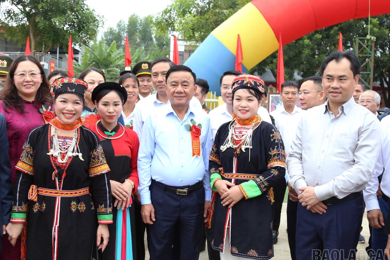 Thường trực Ban Bí thư Trần Cẩm Tú và các đồng chí lãnh đạo tỉnh chung vui với người dân trong ngày hội. Ảnh: Báo Lào Cai