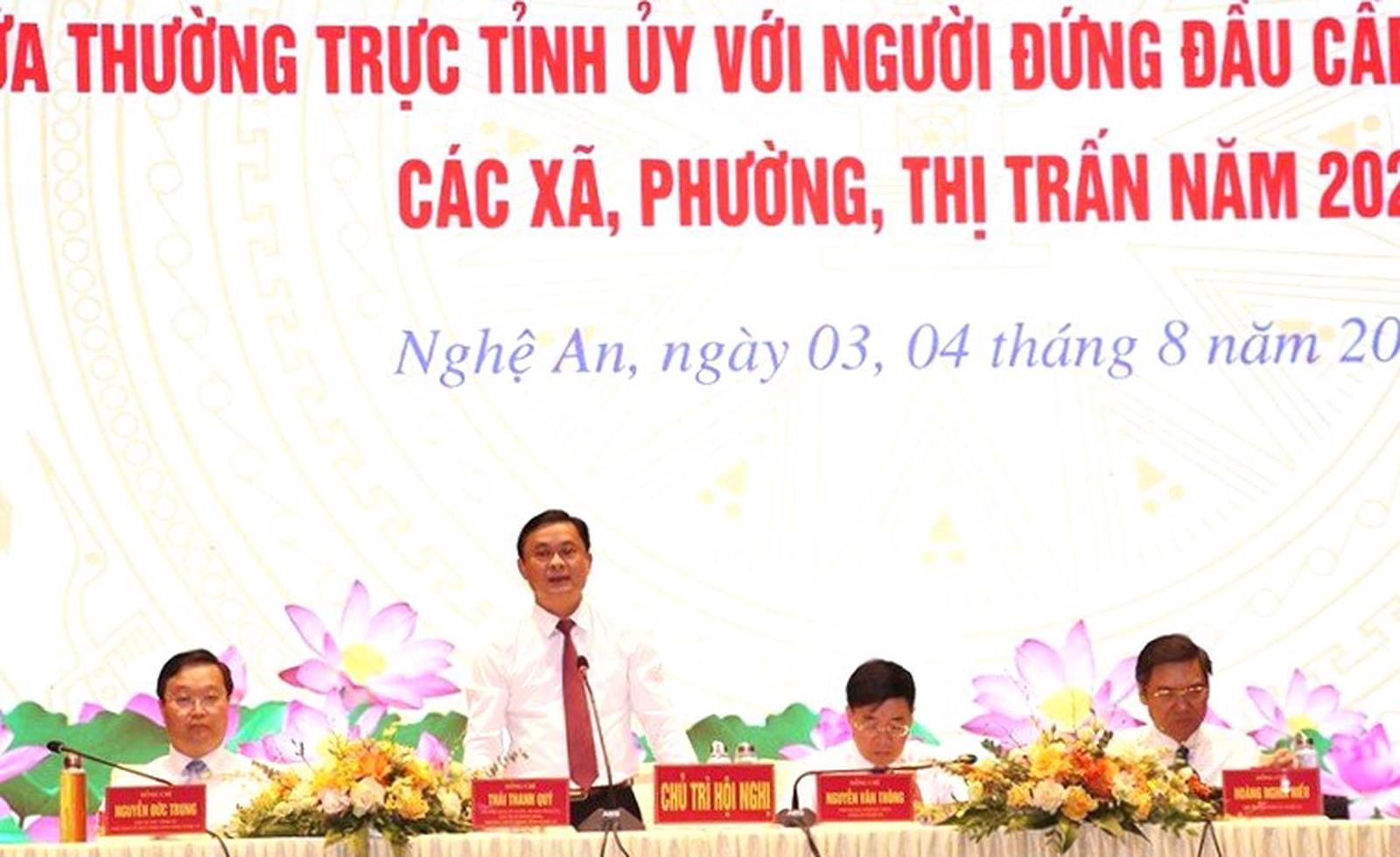 (Thanh tra) - Sáng 4/8, tại TP Vinh, tỉnh Nghệ An tổ chức Chương trình Gặp mặt, đối thoại giữa Thường trực Tỉnh ủy với người đứng đầu cấp ủy, chính quyền các xã, phường, thị trấn trên địa bàn tỉnh Nghệ An năm 2023. Đây là lần thứ 2 sau 5 năm (5/2018), tỉnh Nghệ An tổ chức hoạt động này.
