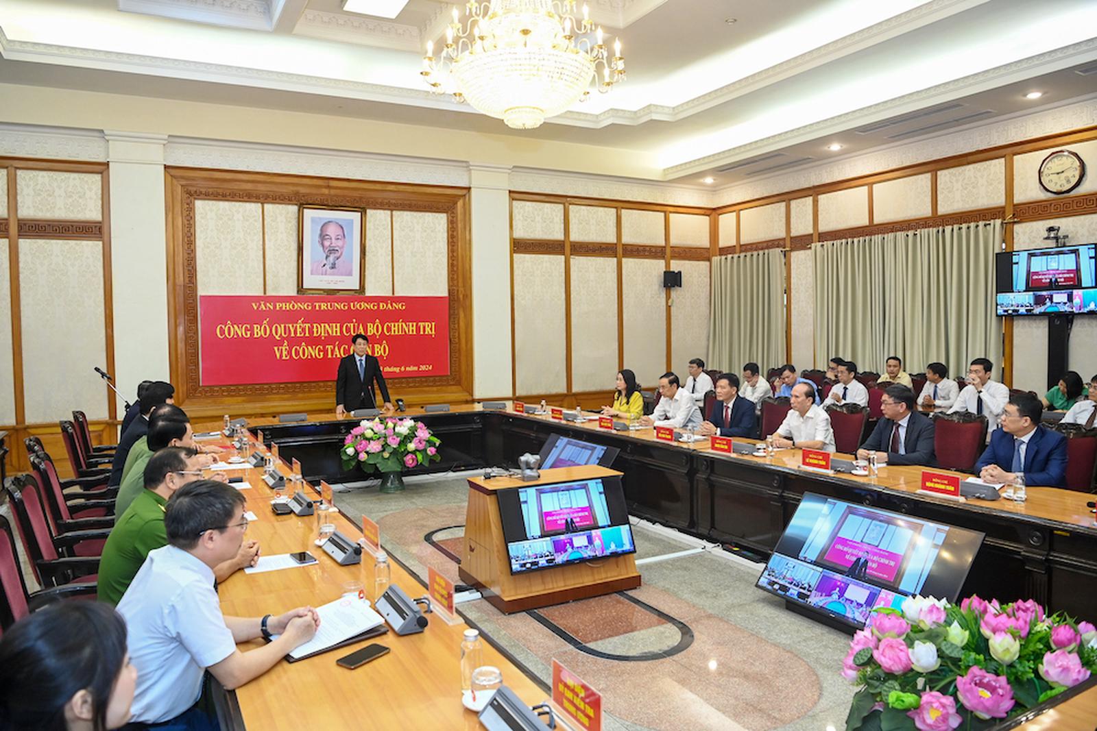 Toàn cảnh buổi công bố quyết định của Bộ Chính trị điều động, phân công Thượng tướng Nguyễn Duy Ngọc giữ chức Chánh Văn phòng Trung ương Đảng. Ảnh: TTXVN