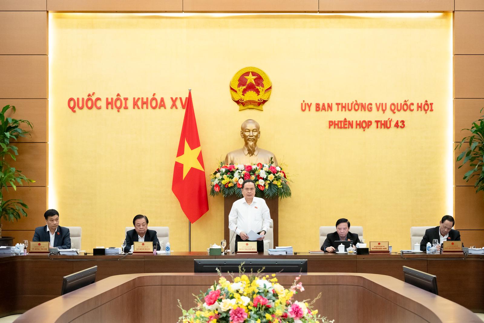 Theo Chủ tịch Quốc hội, phiên họp 43 của Ủy ban Thường vụ Quốc hội sẽ cho ý kiến giải trình tiếp thu chỉnh lý với 3 dự án luật trước khi đưa ra xin ý kiến tại hội nghị đại biểu Quốc hội hoạt động chuyên trách nếu cần thiết, trình Quốc hội thông qua tại kỳ họp thứ 9 tới.