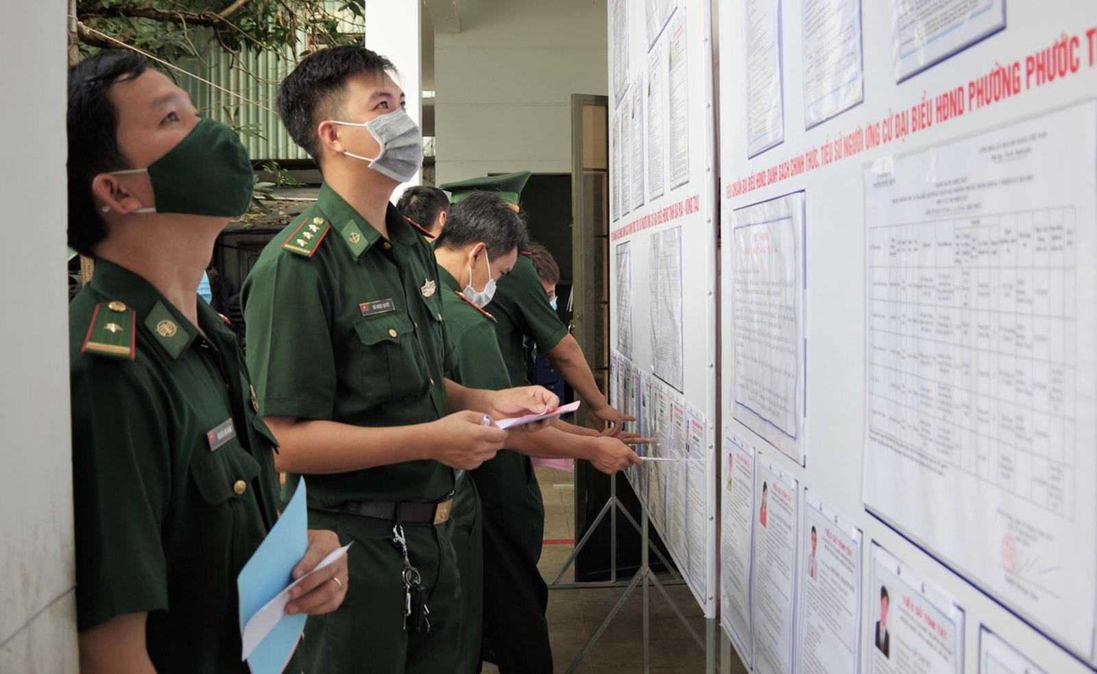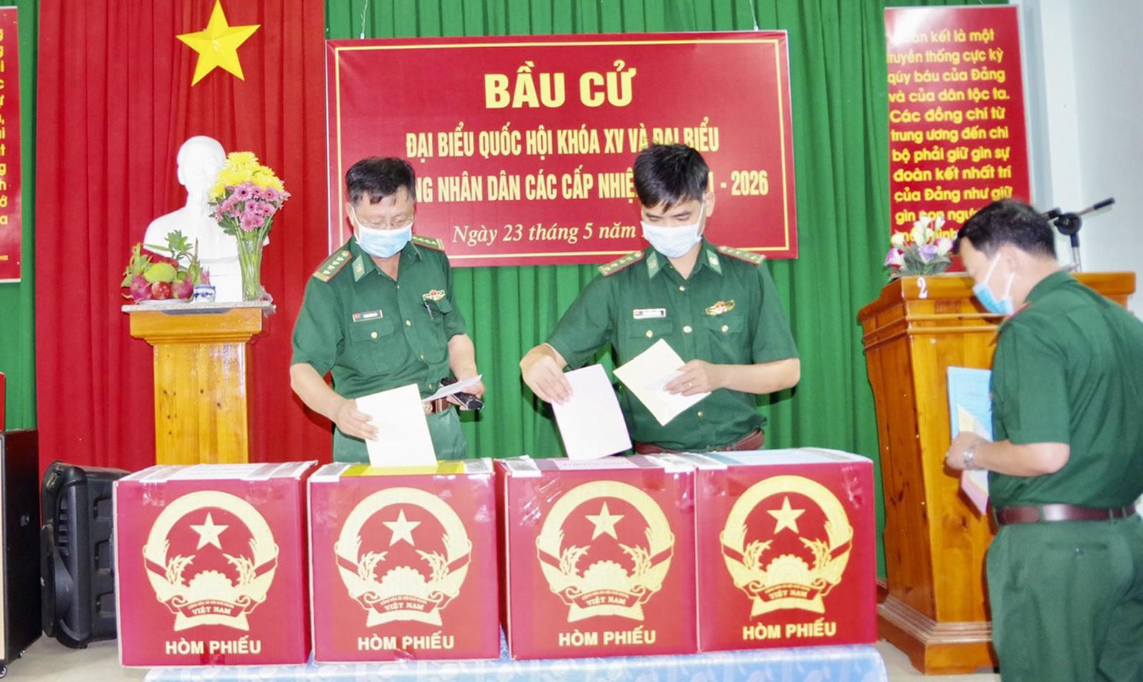 Cán bộ chiến sĩ lực lượng biên phòng tỉnh Bà Rịa - Vũng Tàu tiến hành bỏ phiếu bầu cử. (Ảnh: CTV)