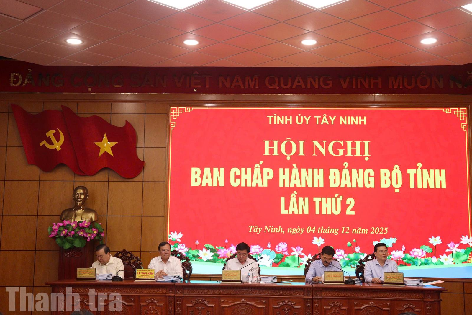 (Thanh tra) - Ngày 4/12, Tỉnh ủy Tây Ninh đã tổ chức Hội nghị Ban Chấp hành Đảng bộ tỉnh lần thứ 2, được trực tuyến đến 96 điểm cầu cấp xã. Chủ trì hội nghị có Bí thư Tỉnh ủy Nguyễn Văn Quyết; Phó Bí thư Thường trực Tỉnh ủy Nguyễn Mạnh Hùng và các Phó Bí thư Tỉnh ủy: Lê Văn Hẳn, Phạm Hùng Thái, Nguyễn Thanh Hải.