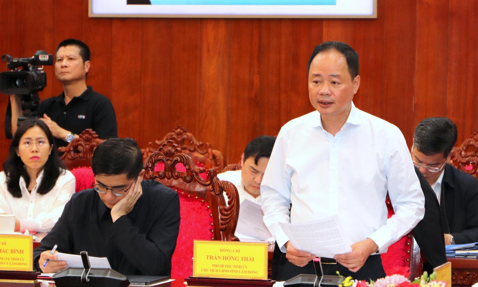Chủ tịch UBND tỉnh Lâm Đồng Trần Hồng Thái báo cáo tại buổi làm việc. Ảnh: Vũ Linh