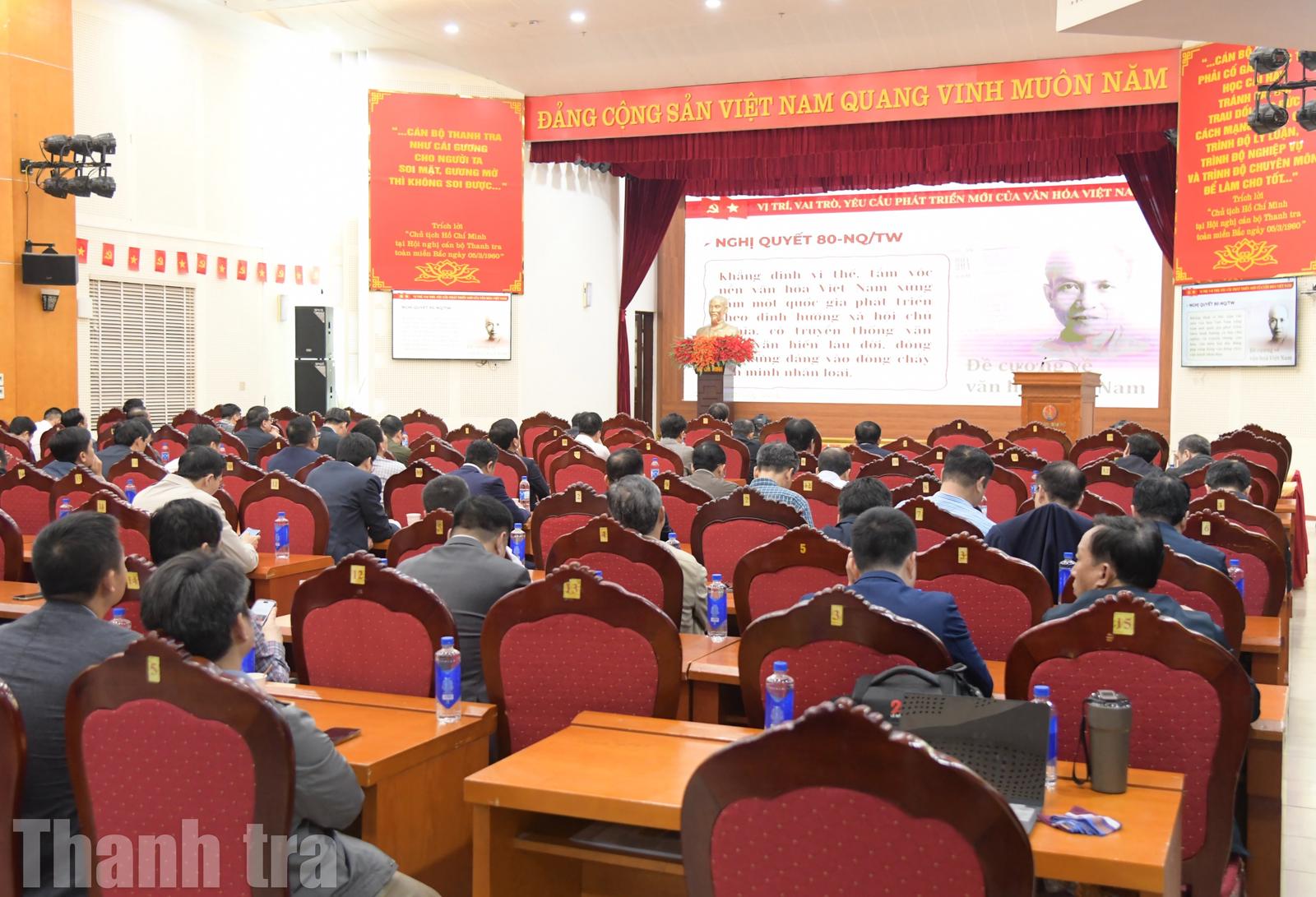 Ở điểm cầu Thanh tra Chính phủ có ông Nguyễn Hữu Hòa, Phó Bí thư Đảng ủy Thanh tra Chính phủ; các Ủy viên Ban Thường vụ Đảng ủy, Ủy viên Ban Chấp hành Đảng bộ Thanh tra Chính phủ; Ủy viên Ủy ban Kiểm tra Đảng ủy; cấp ủy các đảng bộ, chi bộ trực thuộc Đảng bộ Thanh tra Chính phủ; cấp ủy các chi bộ trực thuộc Đảng bộ cơ sở; công chức chuyên trách, kiêm nhiệm các đơn vị tham mưu, giúp việc Đảng ủy và cán bộ, đảng viên được giao tham mưu thực hiện nhiệm vụ tại Nghị quyết 79 và Nghị quyết 80.