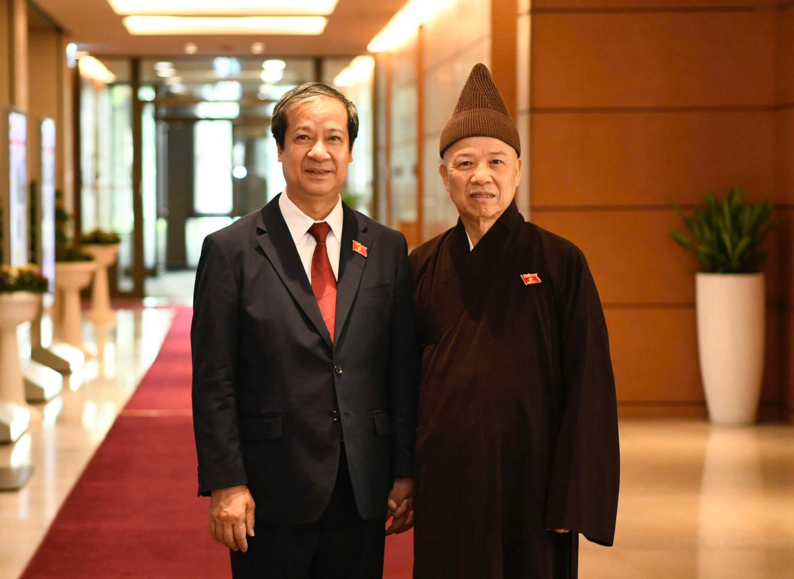 Hoà thượng Thích Thanh Quyết và Bộ trưởng Bộ Giáo dục và Đào tạo Nguyễn Kim Sơn tại kỳ họp Quốc hội, ảnh: NL