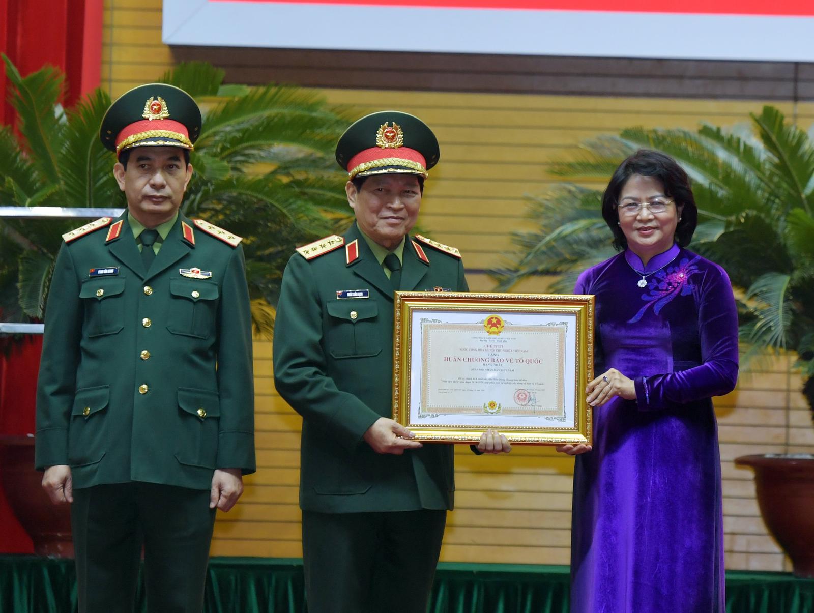 Nhân dịp này, Phó Chủ tịch nước Đặng Thị Ngọc Thịnh đã trao Huân chương Bảo vệ Tổ quốc hạng Nhất tặng Quân đội nhân dân Việt Nam.