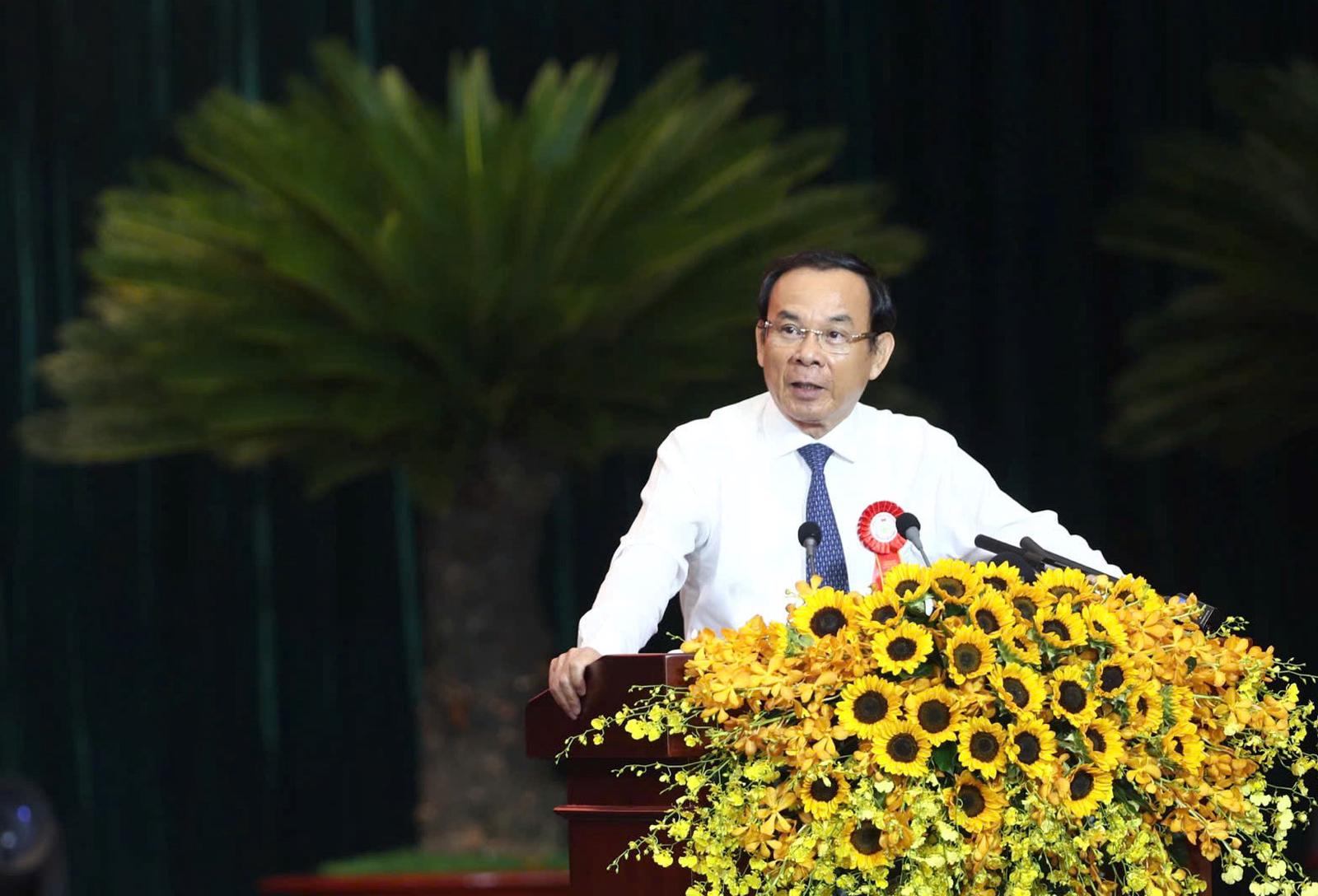 Bí thư Thành ủy Thành phố Hồ Chí Minh Nguyễn Văn Nên phát biểu tại buổi lễ. Ảnh: H.L