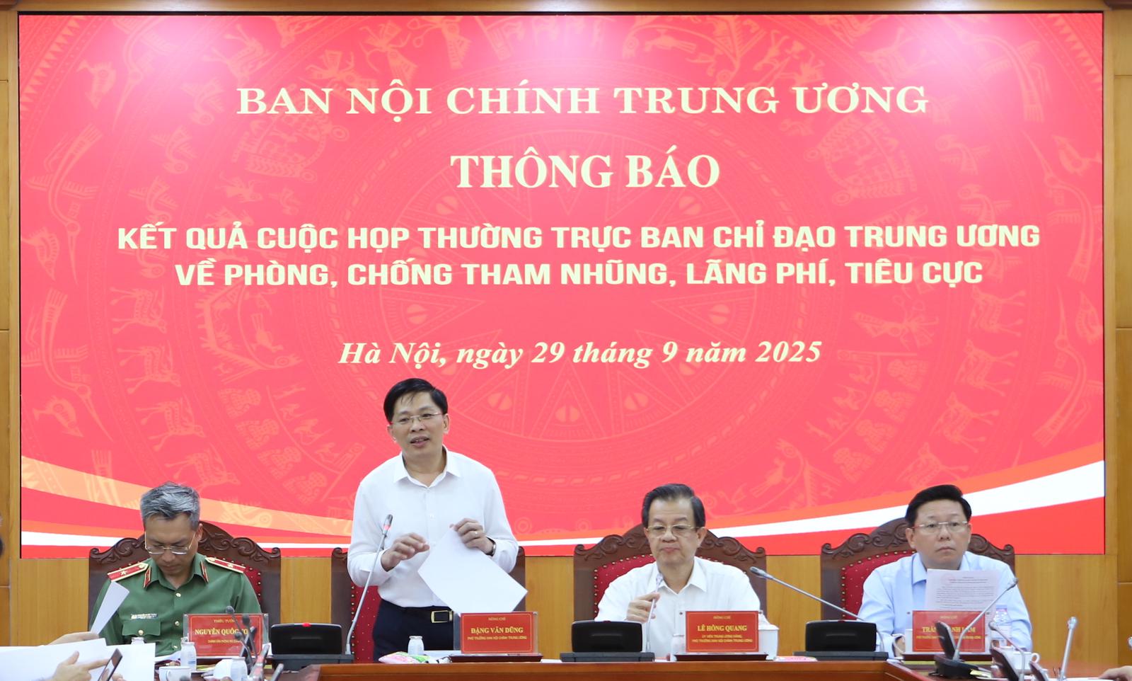 Thông báo kết quả cuộc họp Thường trực Ban Chỉ đạo, Phó Ban Nội chính Trung ương Đặng Văn Dũng cho biết, tại phiên họp, Tổng Bí thư Tô Lâm nhấn mạnh 3 kết quả nổi bật.