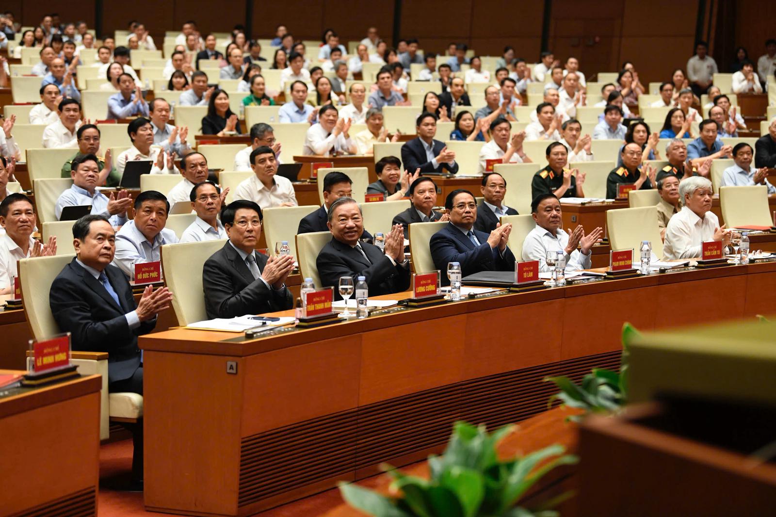 Tổng Bí thư Tô Lâm cũng dành thời gian nhấn mạnh thêm một số định hướng, nhiệm vụ và giải pháp trọng tâm của từng nghị quyết.