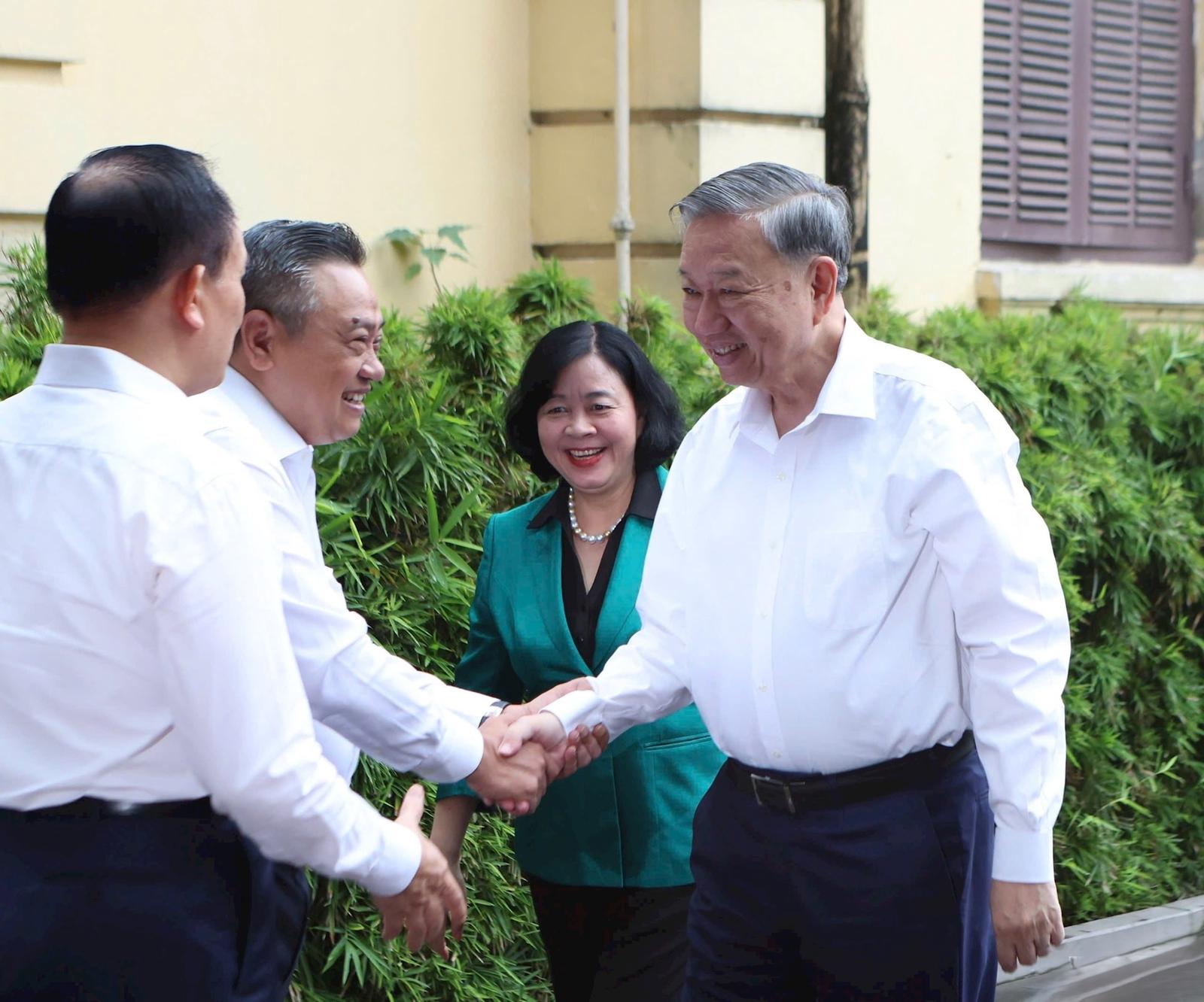 Tổng Bí thư Tô Lâm và các lãnh đạo thành phố Hà Nội. Ảnh: Viết Thành