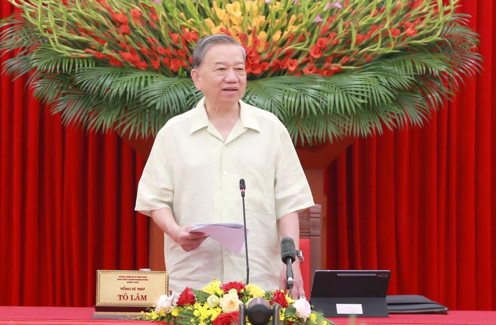 Tổng Bí thư Tô Lâm nêu rõ, không chấp nhận tư duy nhiệm kỳ, níu kéo lợi ích cục bộ, không dám nghĩ, dám làm, không dám đột phá. Ảnh: TTTXVN
