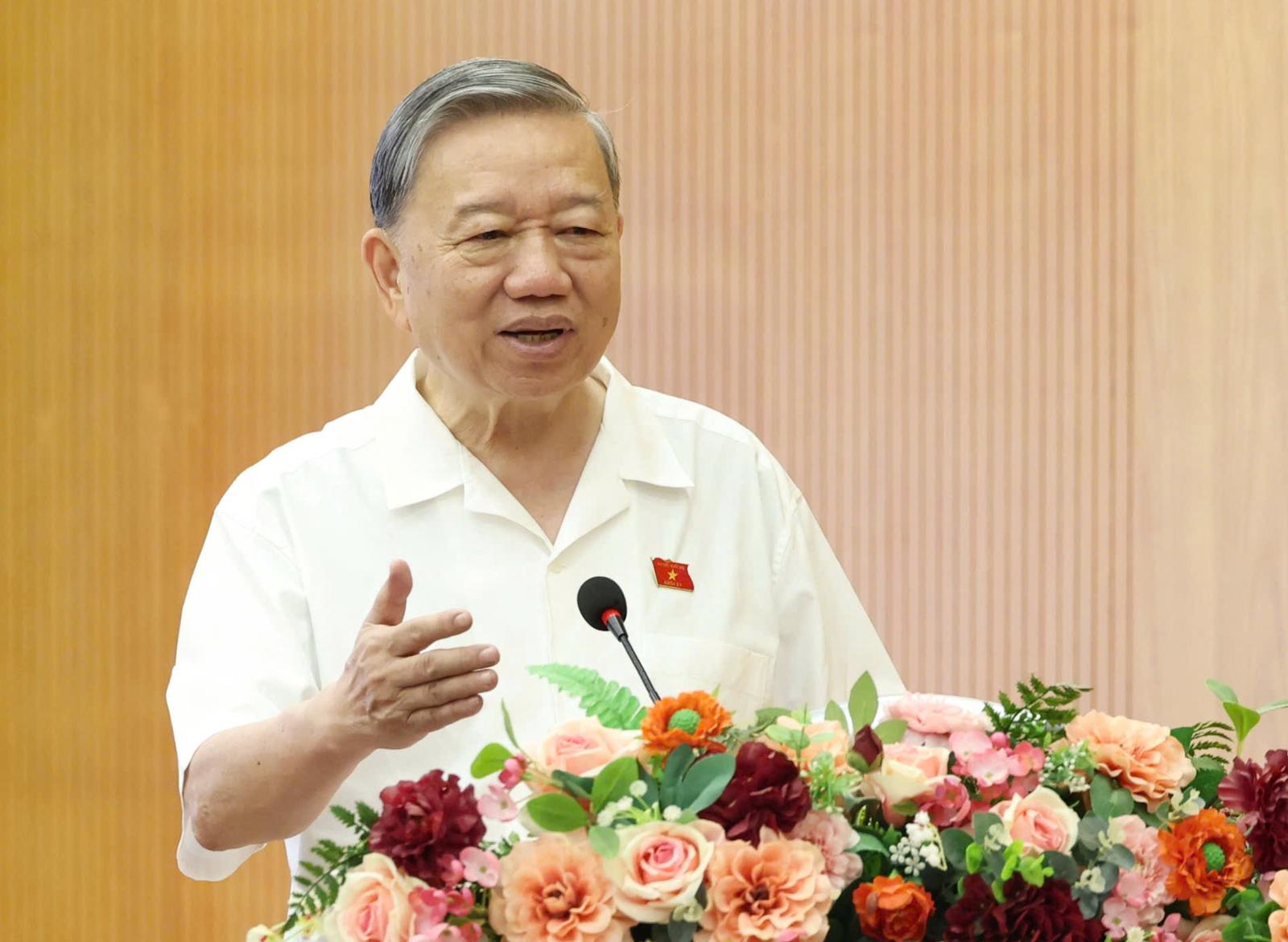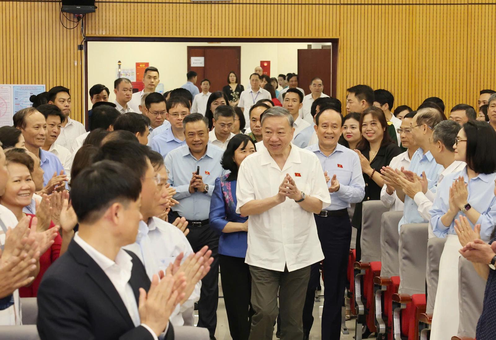 Tổng Bí thư Tô Lâm và các đại biểu Quốc hội thuộc đơn vị bầu cử số 1 TP Hà Nội tiếp xúc cử tri 3 quận (Hai Bà Trưng, Ba Đình, Đống Đa) trước kỳ họp thứ 9 Quốc hội khóa XV. Ảnh: Đ.X