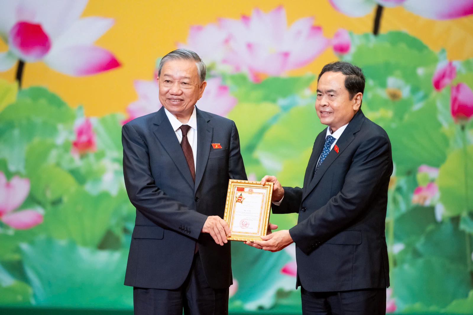 Tổng Bí thư chia sẻ, “hôm nay, chúng ta tôn vinh Quốc hội không chỉ như một thiết chế quyền lực nhà nước cao nhất, mà trước hết là một Ngôi nhà chung của những người đại biểu nhân dân - đã từng mang trên vai trách nhiệm nặng nề mà cao quý: lắng nghe dân, nói tiếng nói của dân, bảo vệ lợi ích chính đáng của dân”.