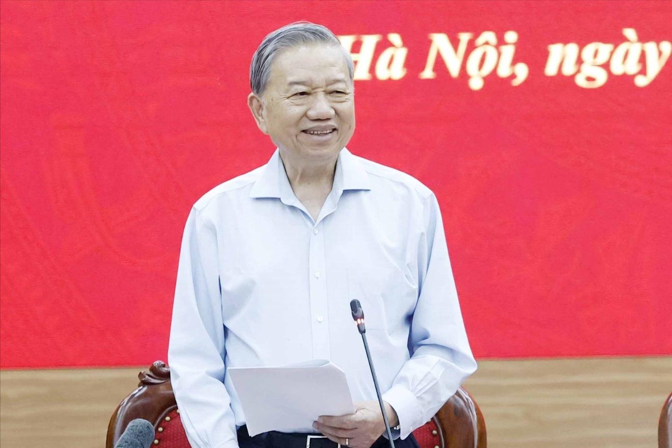 Tổng Bí thư Tô Lâm làm việc với Ban Chính sách, chiến lược Trung ương liên quan việc xây dựng Nghị quyết của Trung ương về giải pháp chiến lược thúc đẩy tăng trưởng kinh tế hai con số gắn với xác lập mô hình tăng trưởng mới. Ảnh: TTXVN