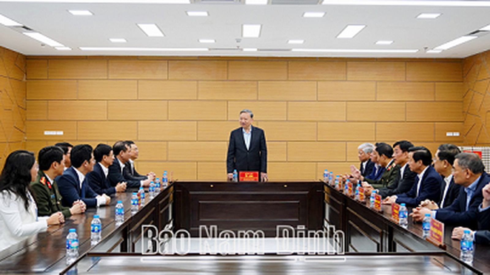 (Thanh tra) - Nhân dịp kỷ niệm 95 năm ngày thành lập Đảng Cộng sản Việt Nam (3/2/1930 - 3/2/2025); đón Tết Nguyên đán Ất Tỵ 2025, ngày 16/1/2025, đồng chí Tô Lâm, Tổng Bí thư Ban Chấp hành Trung ương Đảng cùng đoàn công tác của Trung ương về thăm, làm việc, chúc Tết Đảng bộ, chính quyền, Nhân dân tỉnh Nam Định.